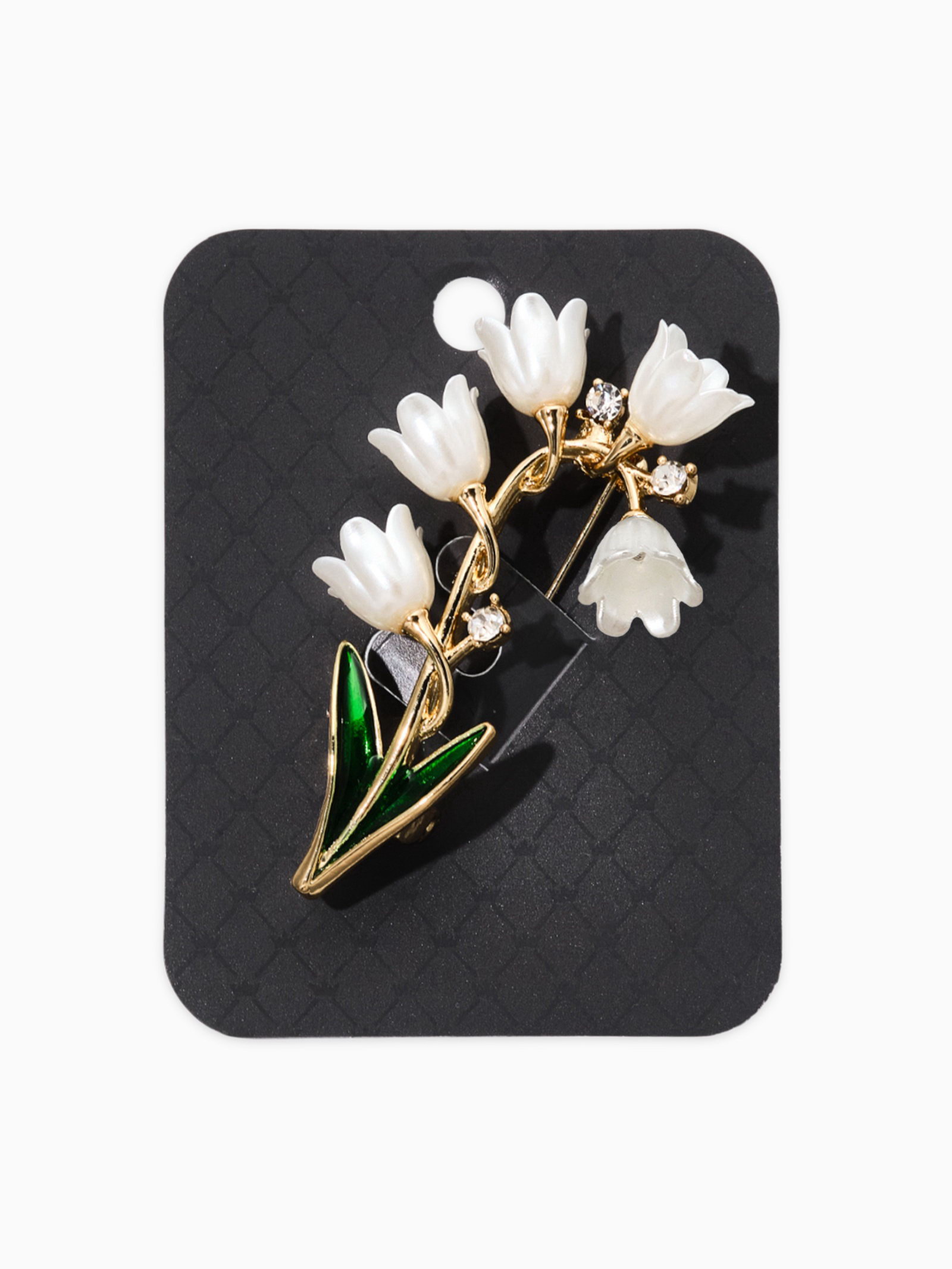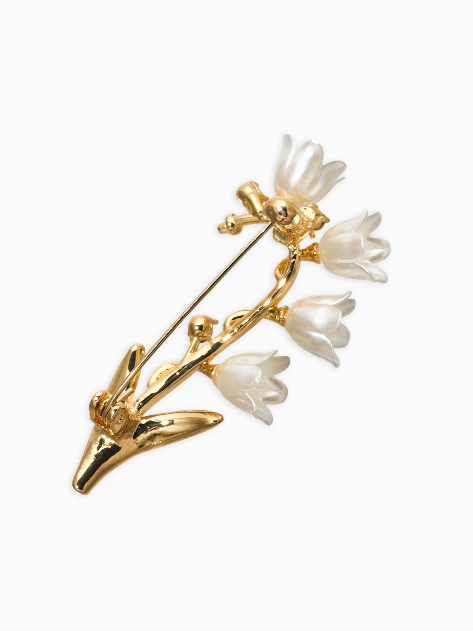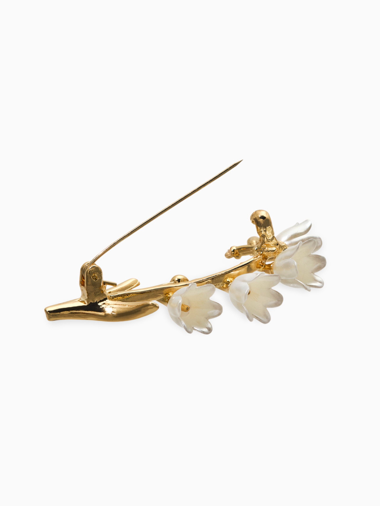 Брошь "Цветы Ландышей", бело-зелёная в золоте, 3.5x6x2 см., QF, Китай