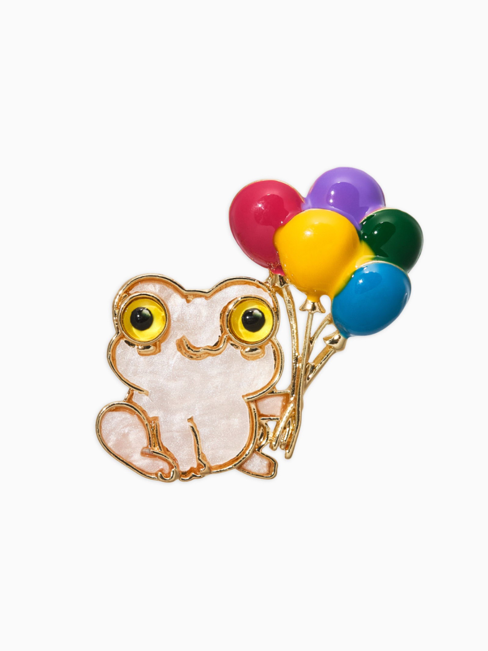 Брошь перламутровый "Лягушка с воздушными шариками", цветная в золоте, 2.5x3.5x1.5 см., QF, Китай