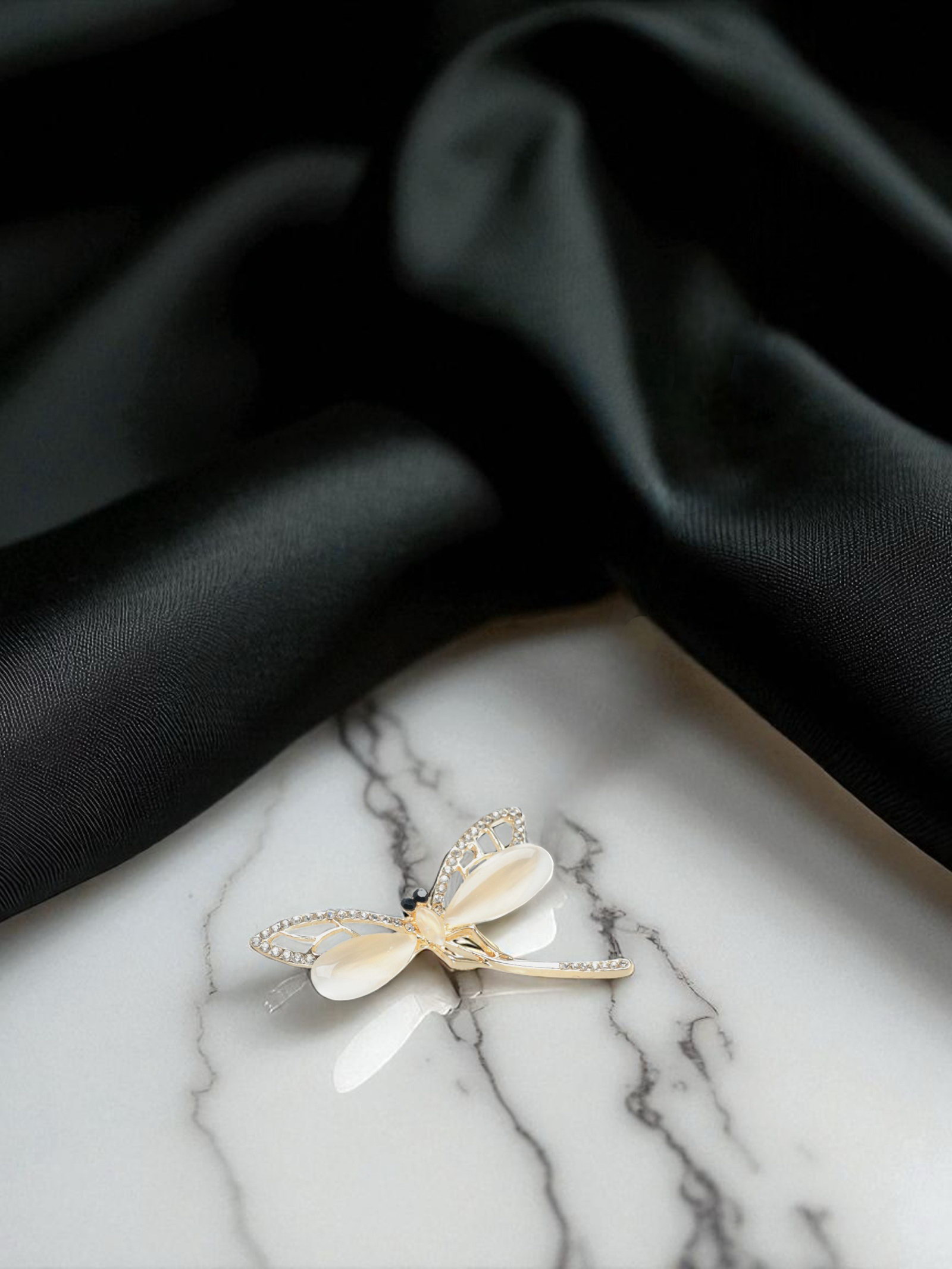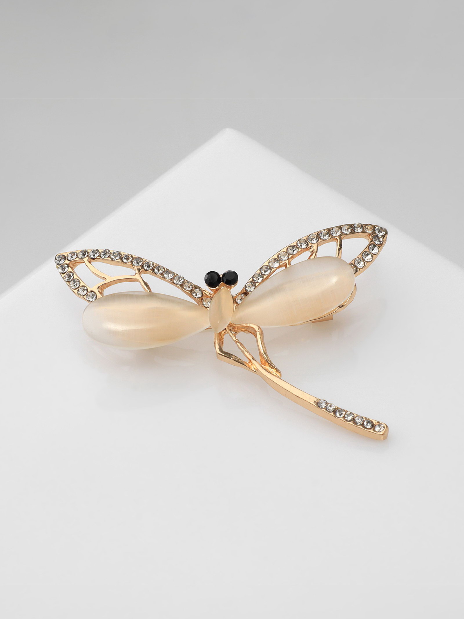 Брошь "Стрекоза" порхающая, бежевая в золоте, 4.5x5x1 см., QF, Китай