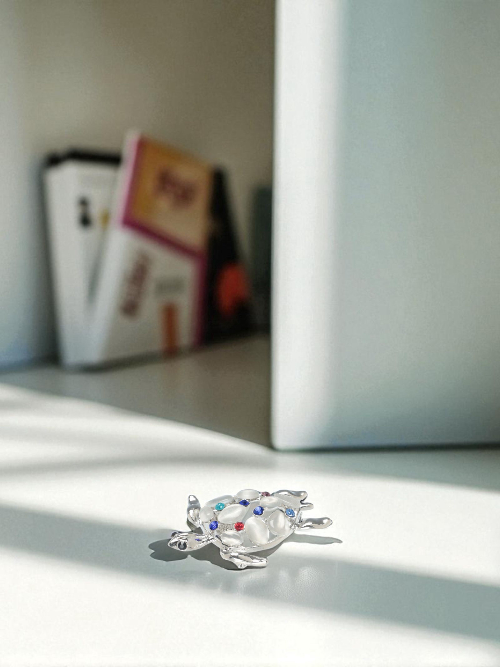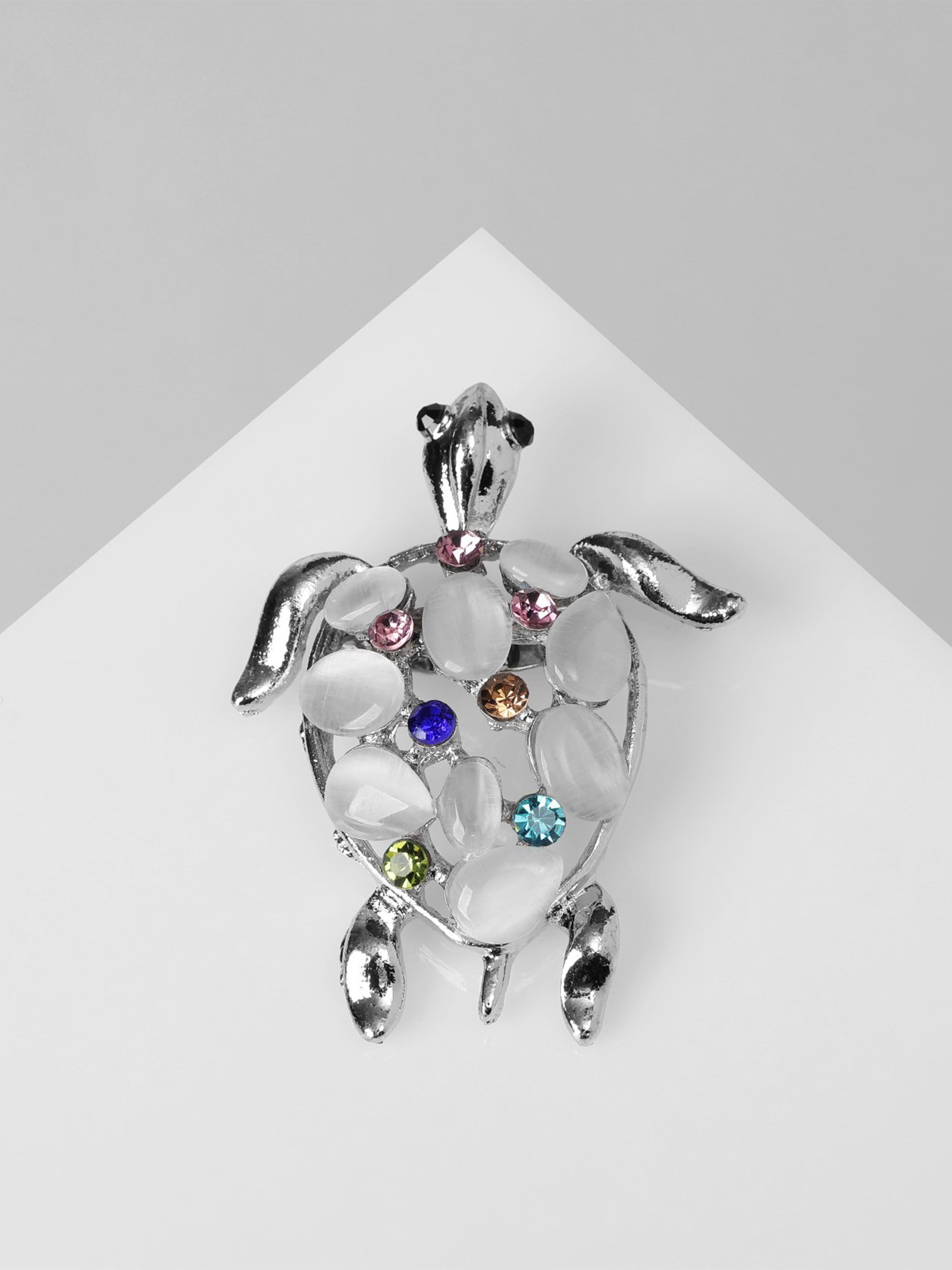 Брошь "Черепаха" морская, цветная в серебре, 3x4.5x1 см., QF, Китай