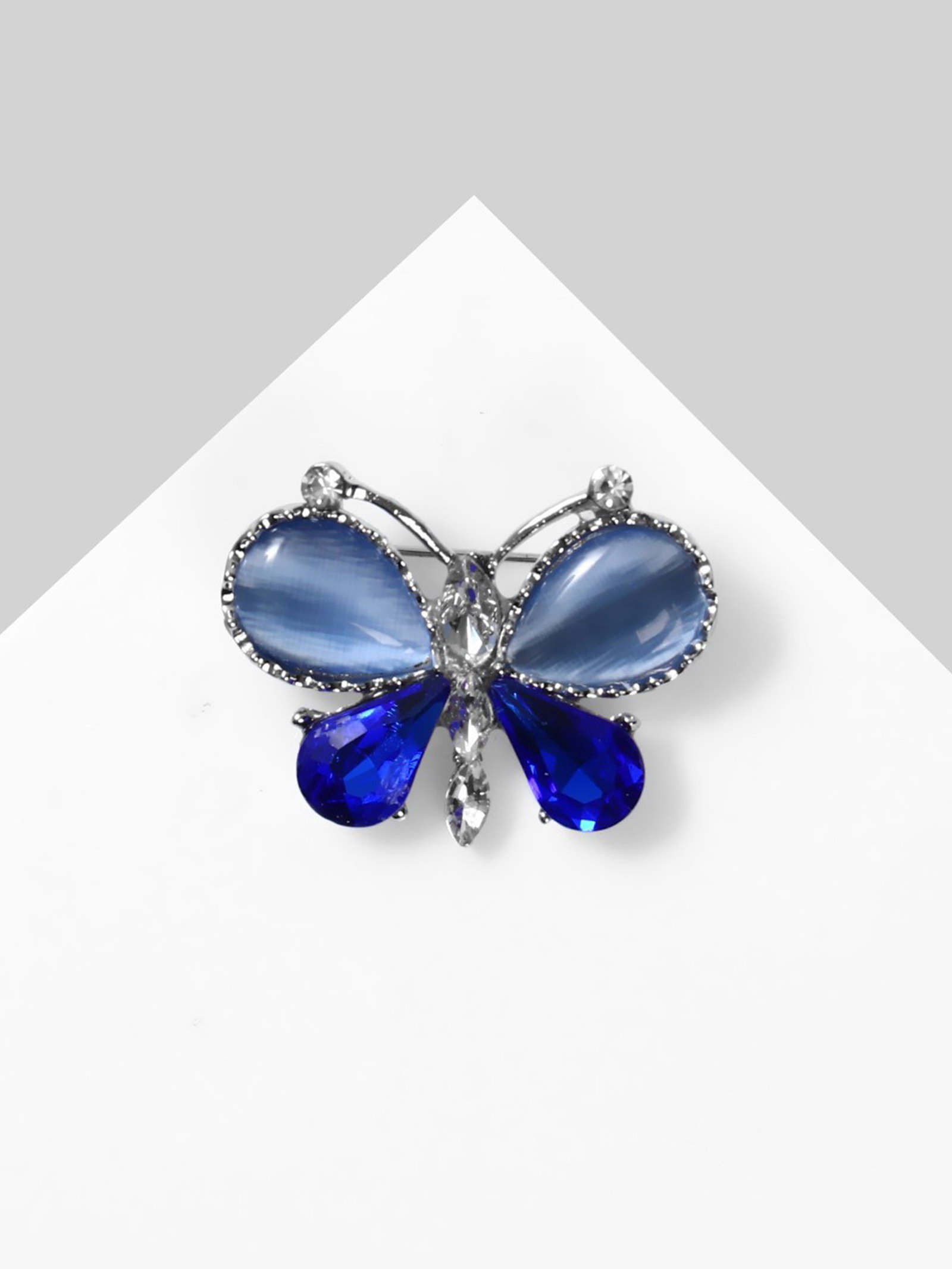 Брошь "Бабочка" летняя, синий в серебре, 4x3x1 см., QF, Китай