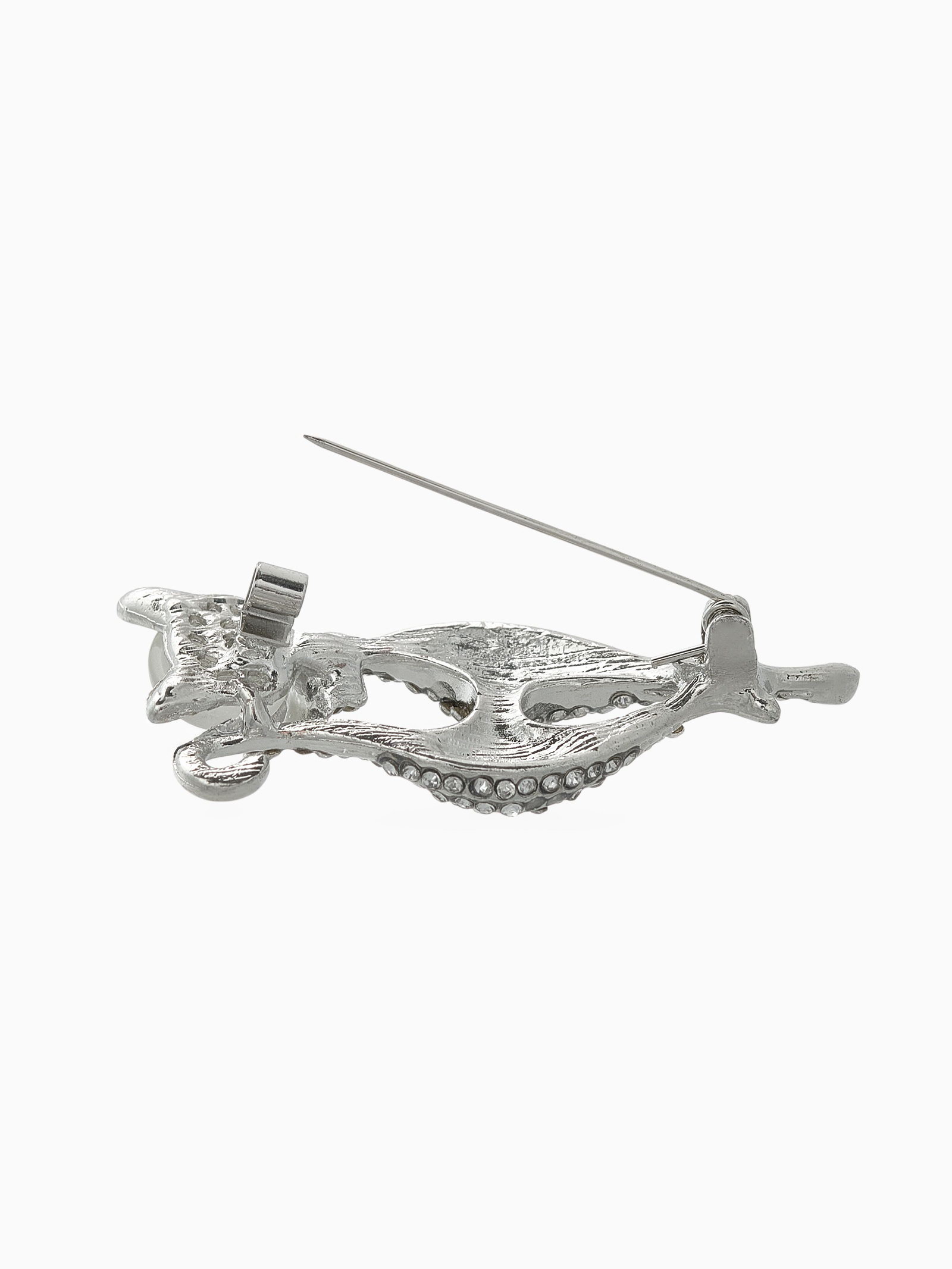 Брошь "Кошка" изящная с бантом, белая в серебре, 3x5x1 см., QF, Китай