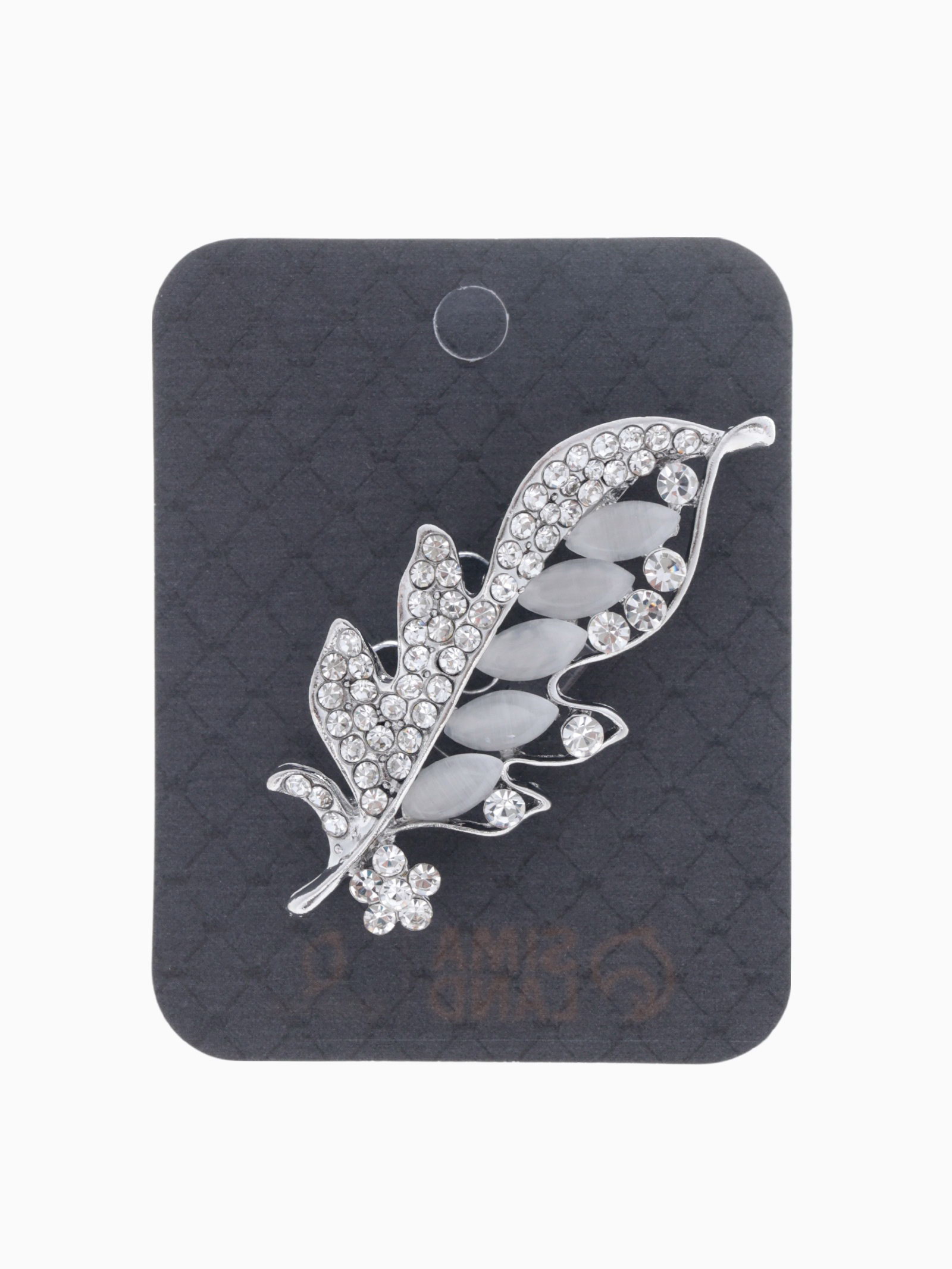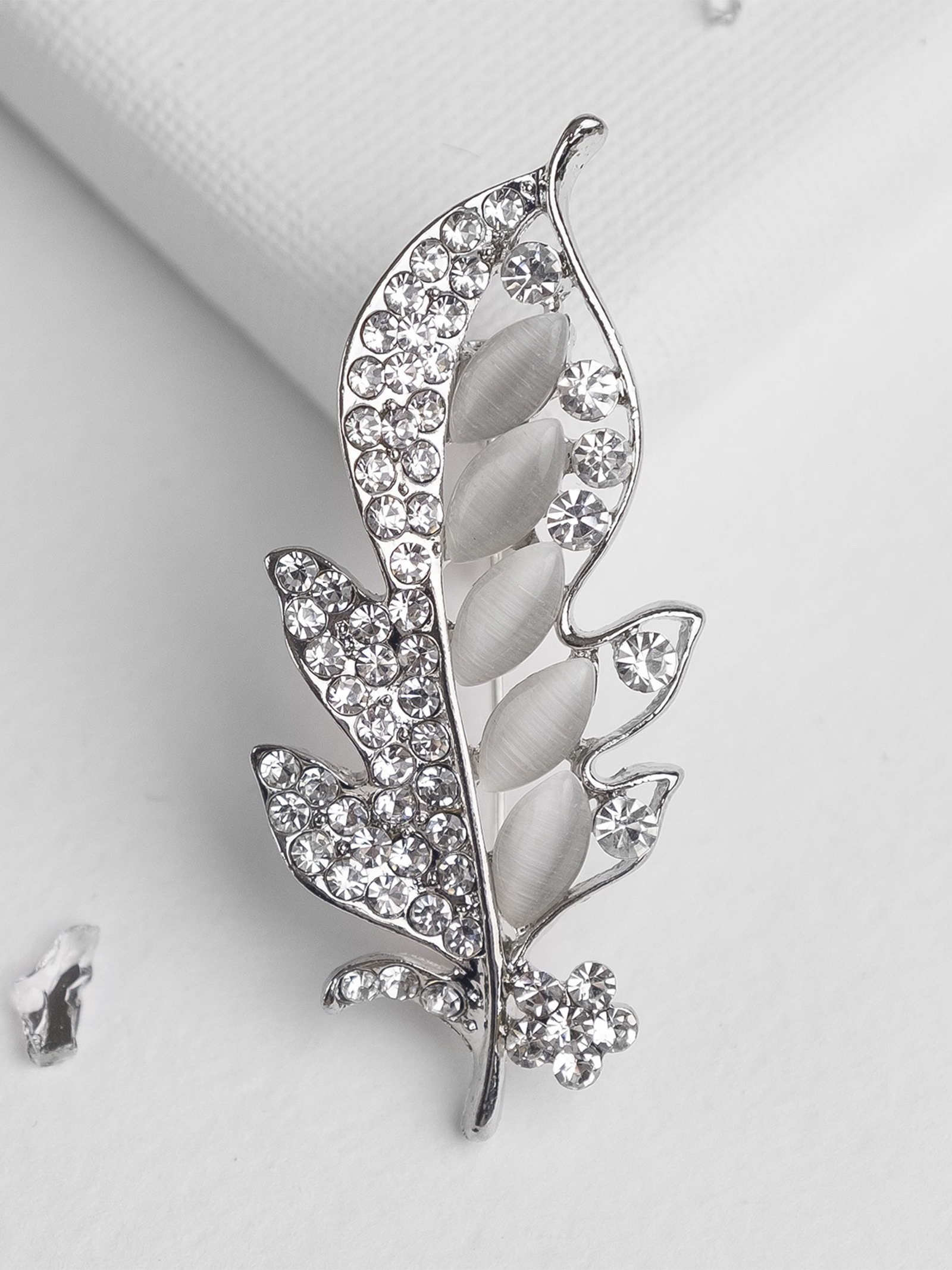 Брошь "Пёрышко", белая в серебре, 2.5x6x1.3 см., QF, Китай