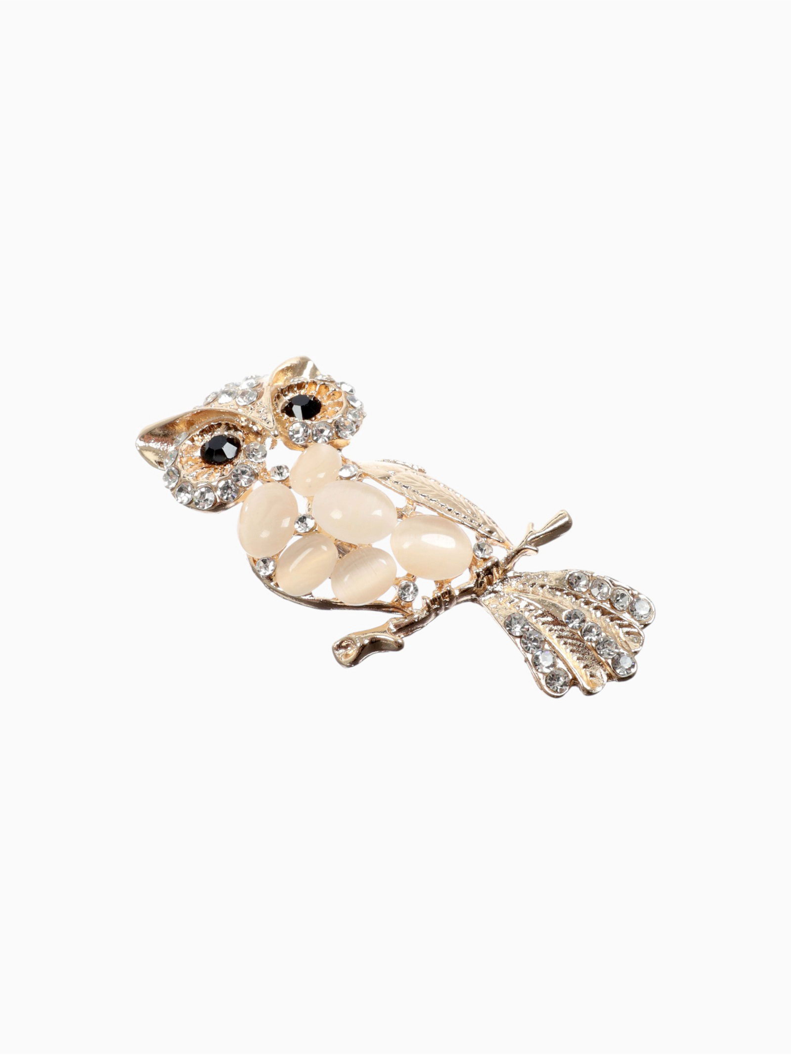 Брошь "Сова", белая в золоте, 3.5x7.5x1 см., QF, Китай