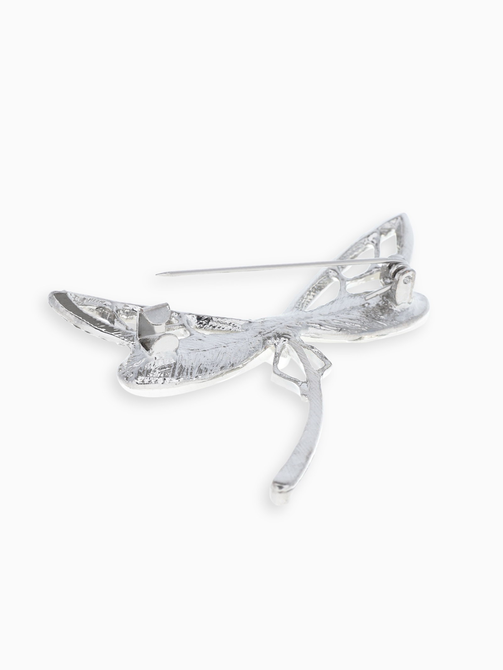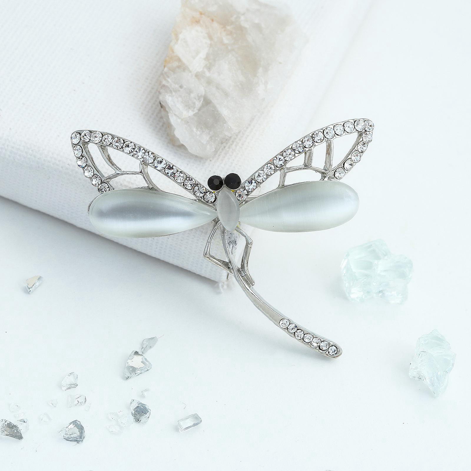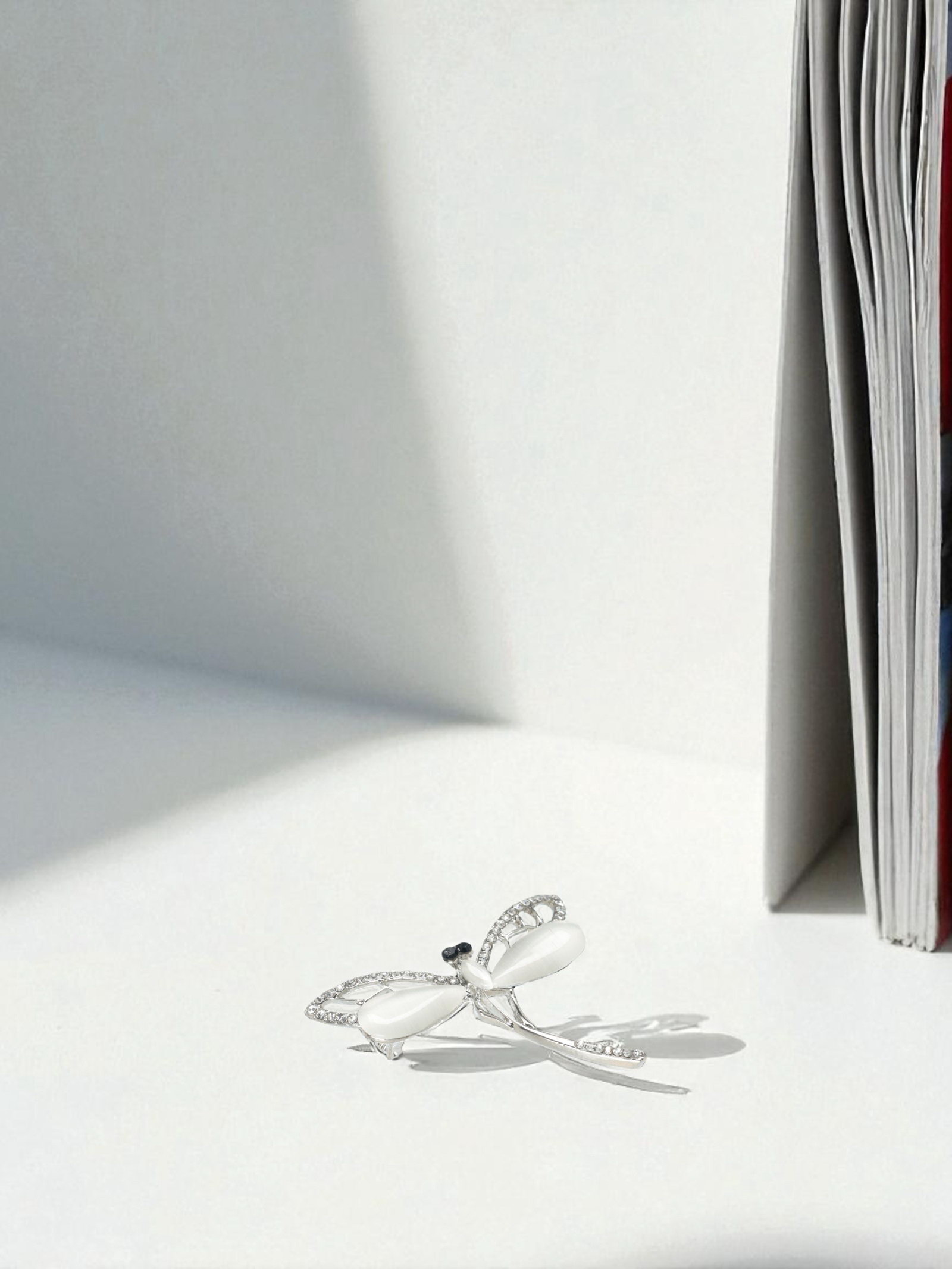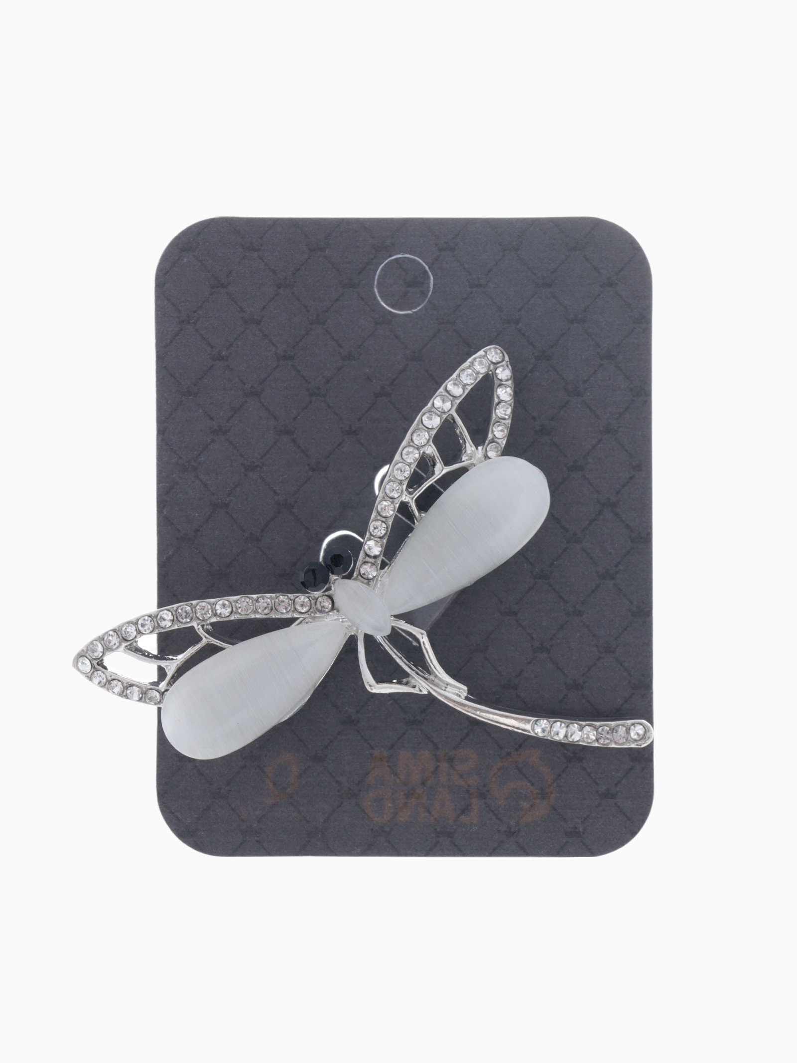 Брошь "Стрекоза" порхающая, белая в серебре, 4.5x5x1 см., QF, Китай