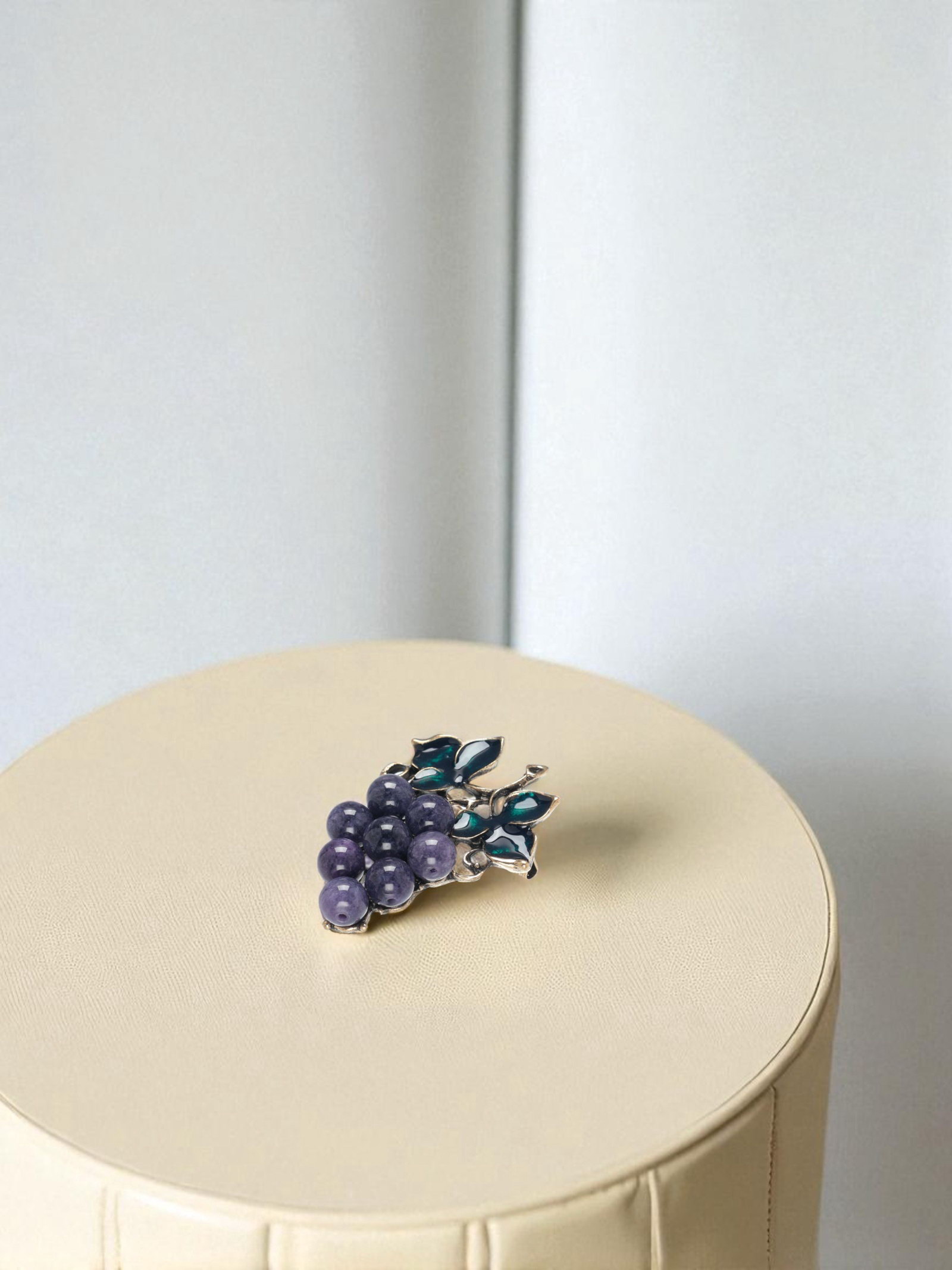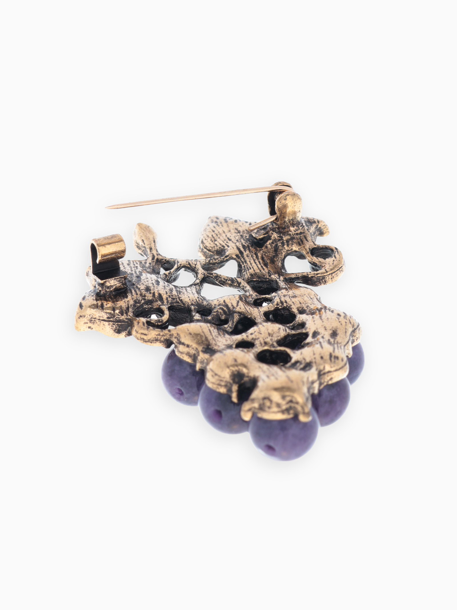 Брошь "Виноградная лоза аметиста", фиолетово-зелёная в чернёном золоте, 3.2x5x1 см., QF, Китай