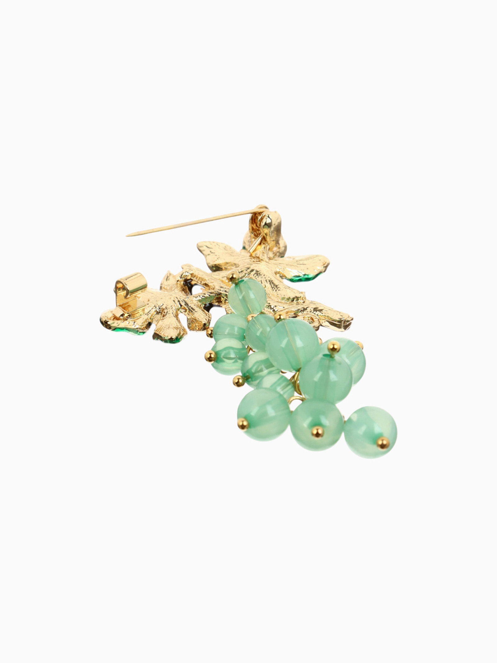 Брошь "Нефрит" виноград, зелёный в золоте, 4.5x6x2 см., QF, Китай