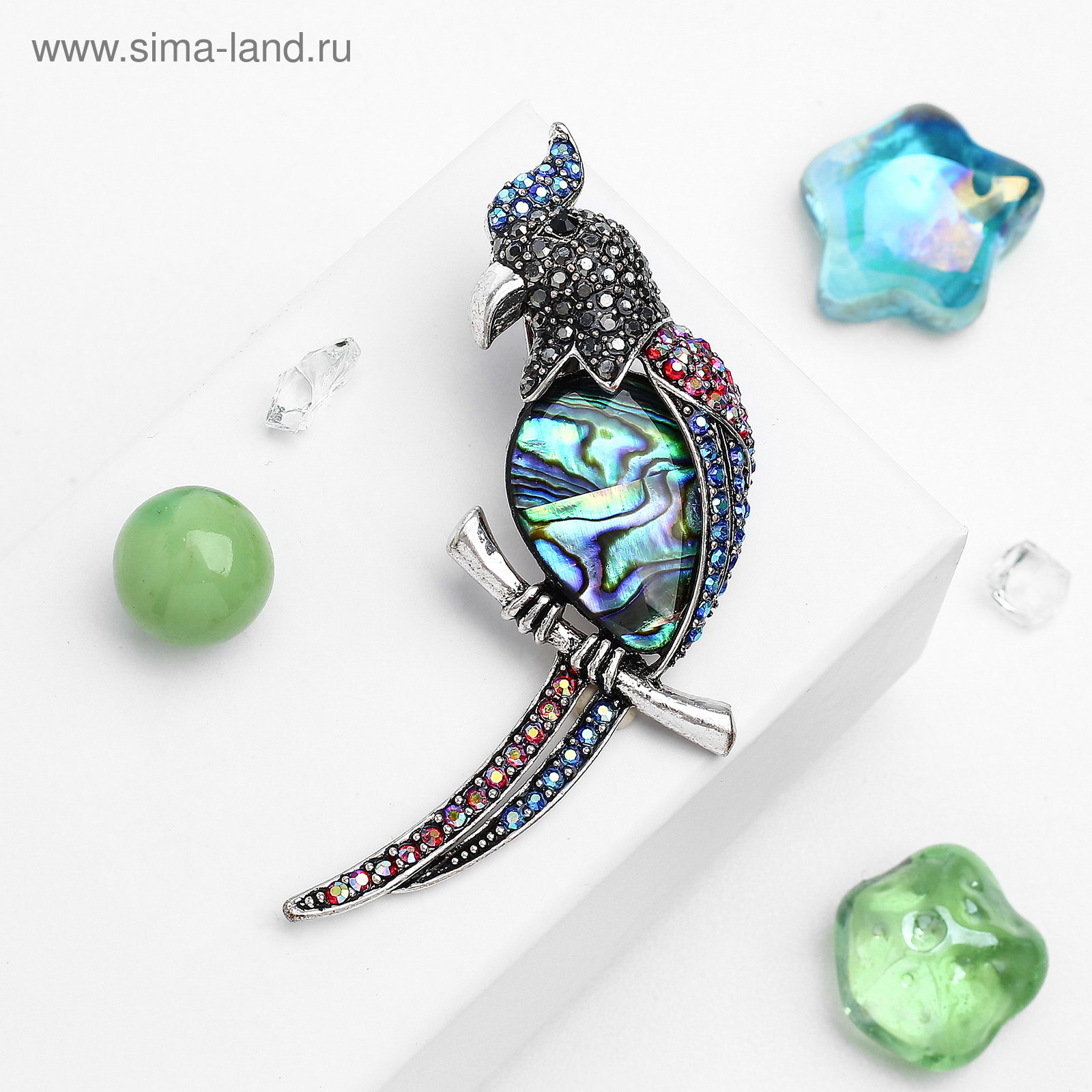 Брошь-подвеска "Галиотис" попугай, 5x8.5x1 см., Китай