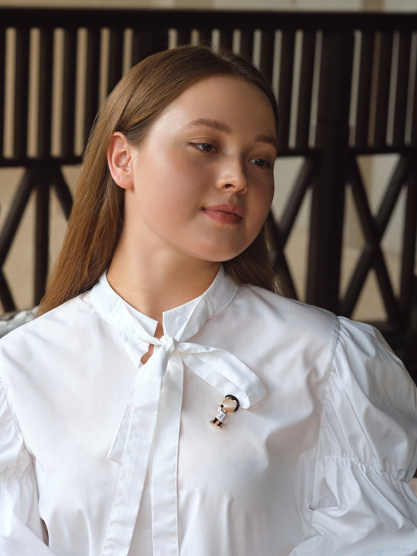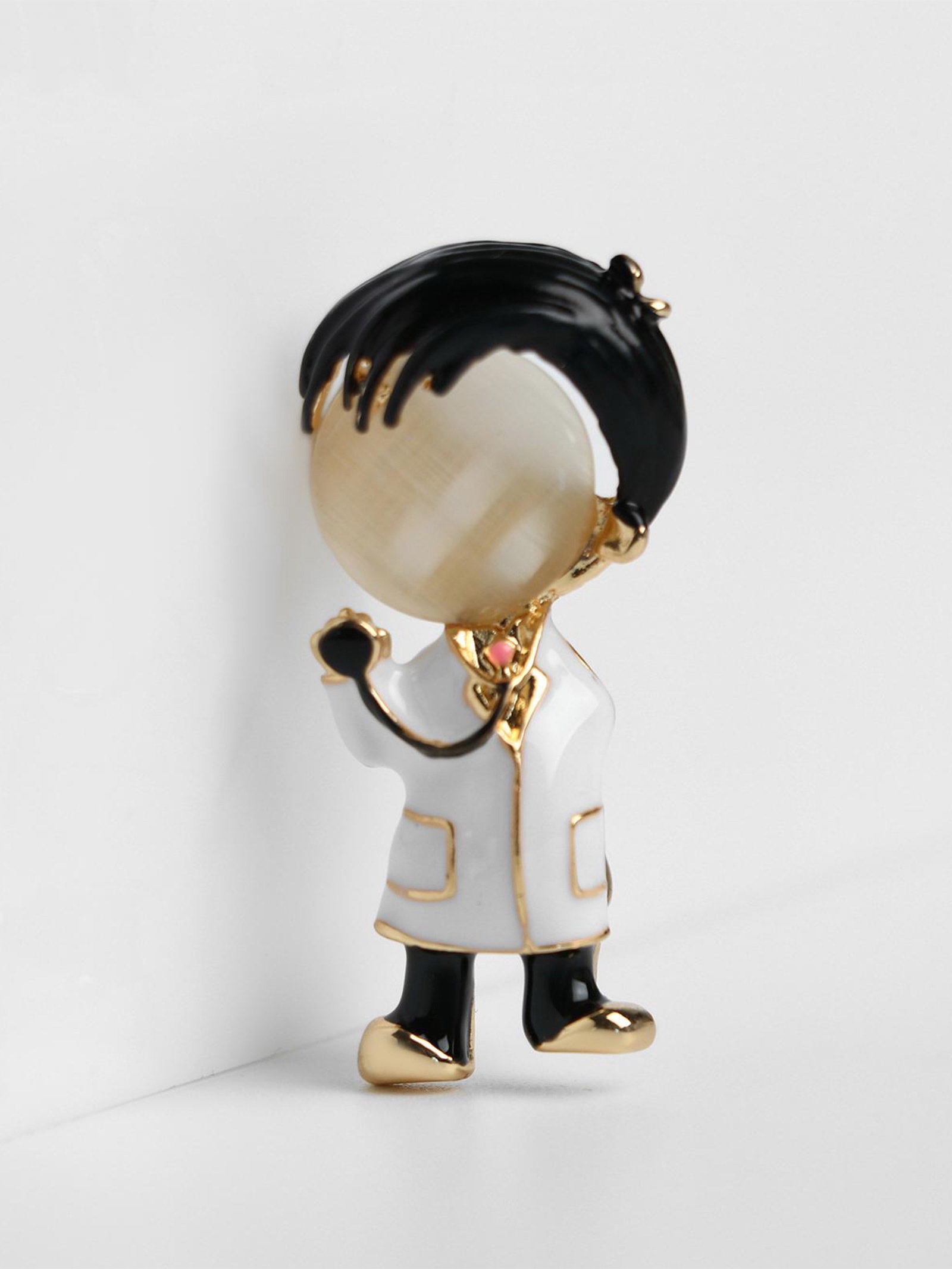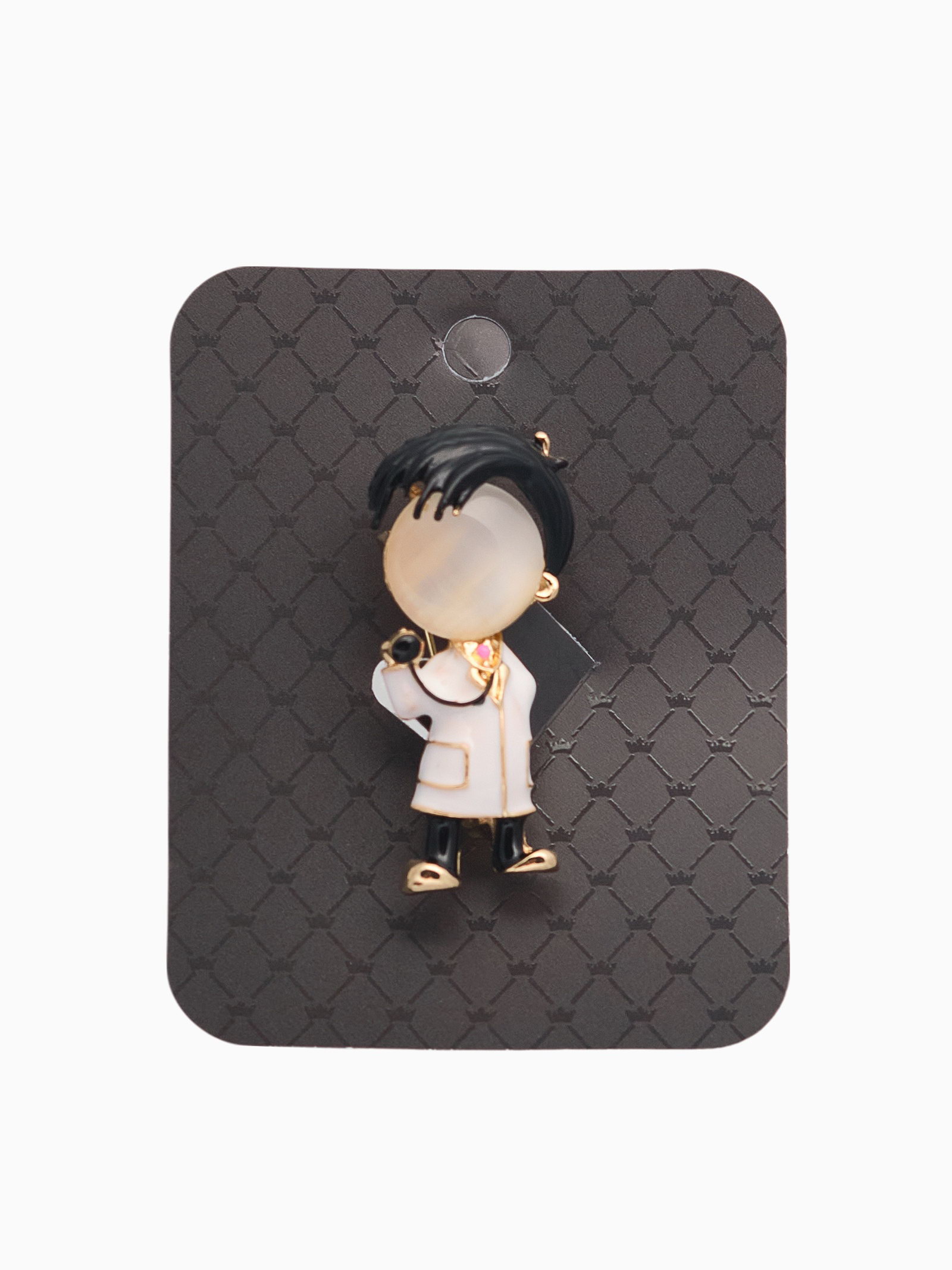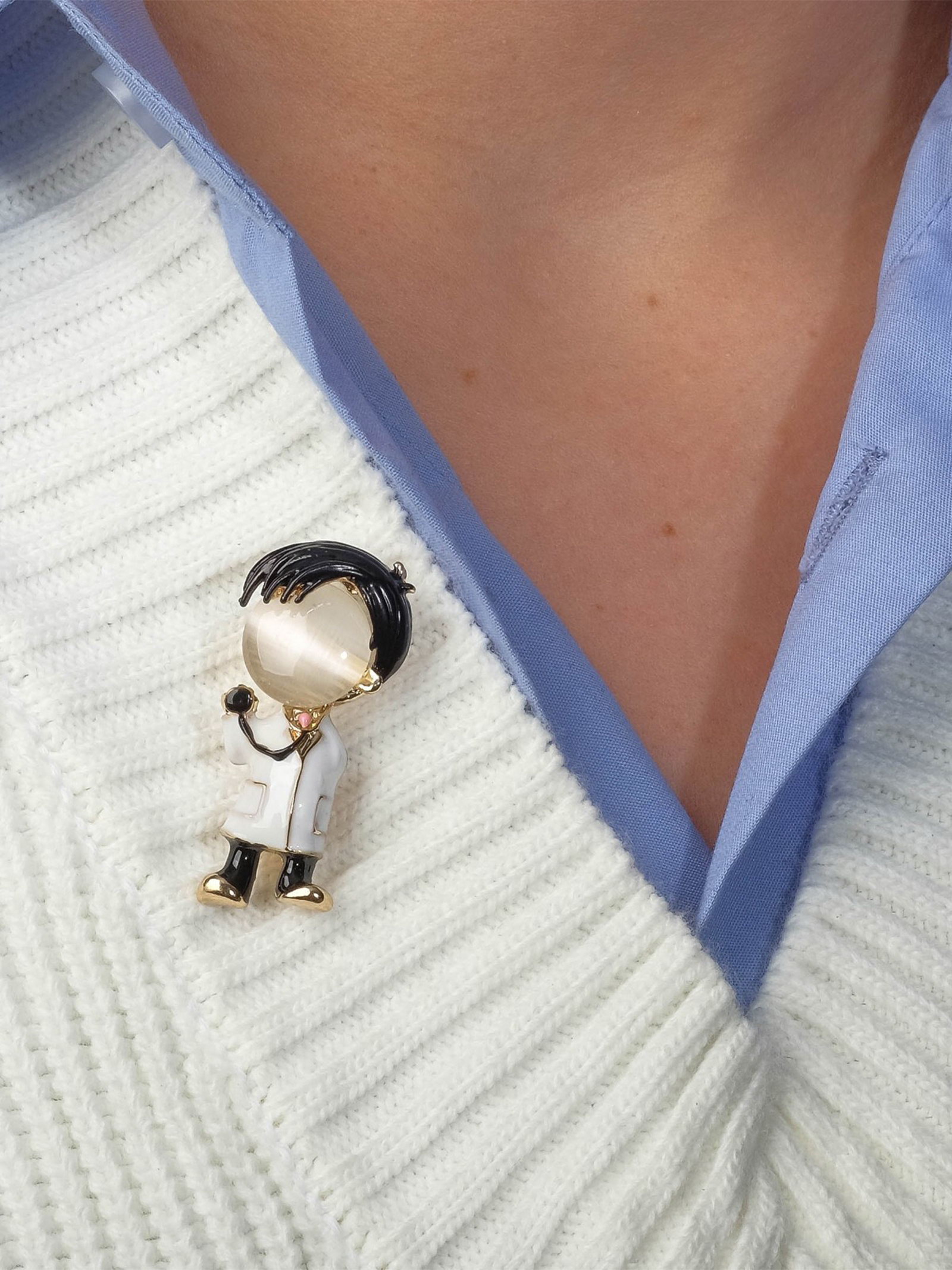 Брошь "Доктор" мальчик, чёрно-белая в золоте, 2.3x4x0.5 см., QF, Китай