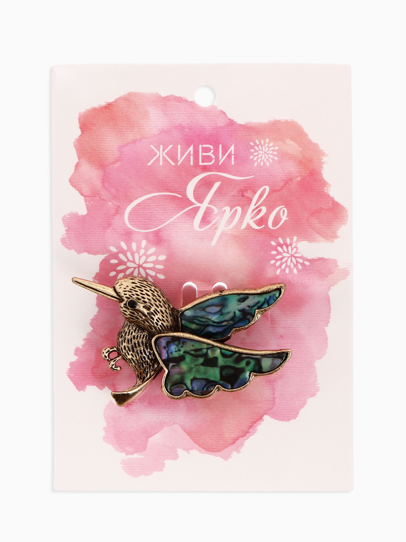Брошь "Галиотис" колибри, цвет зелёный в чернёном золоте, 4x4.8x1 см., QF, Китай