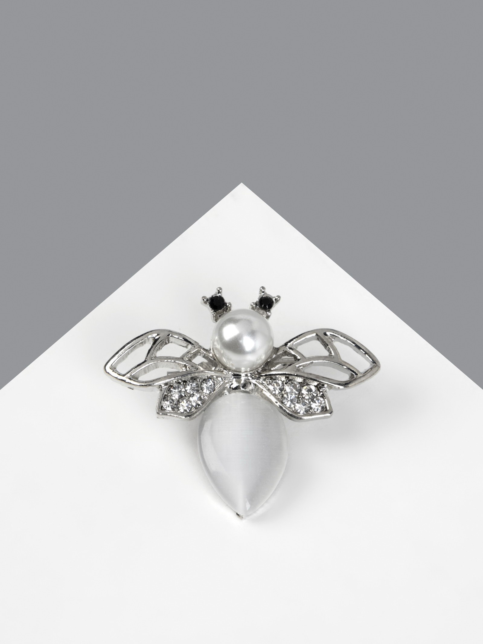 Брошь "Пчела" с ажурными крыльями, белая в серебре, 1x3x1 см., QF, Китай