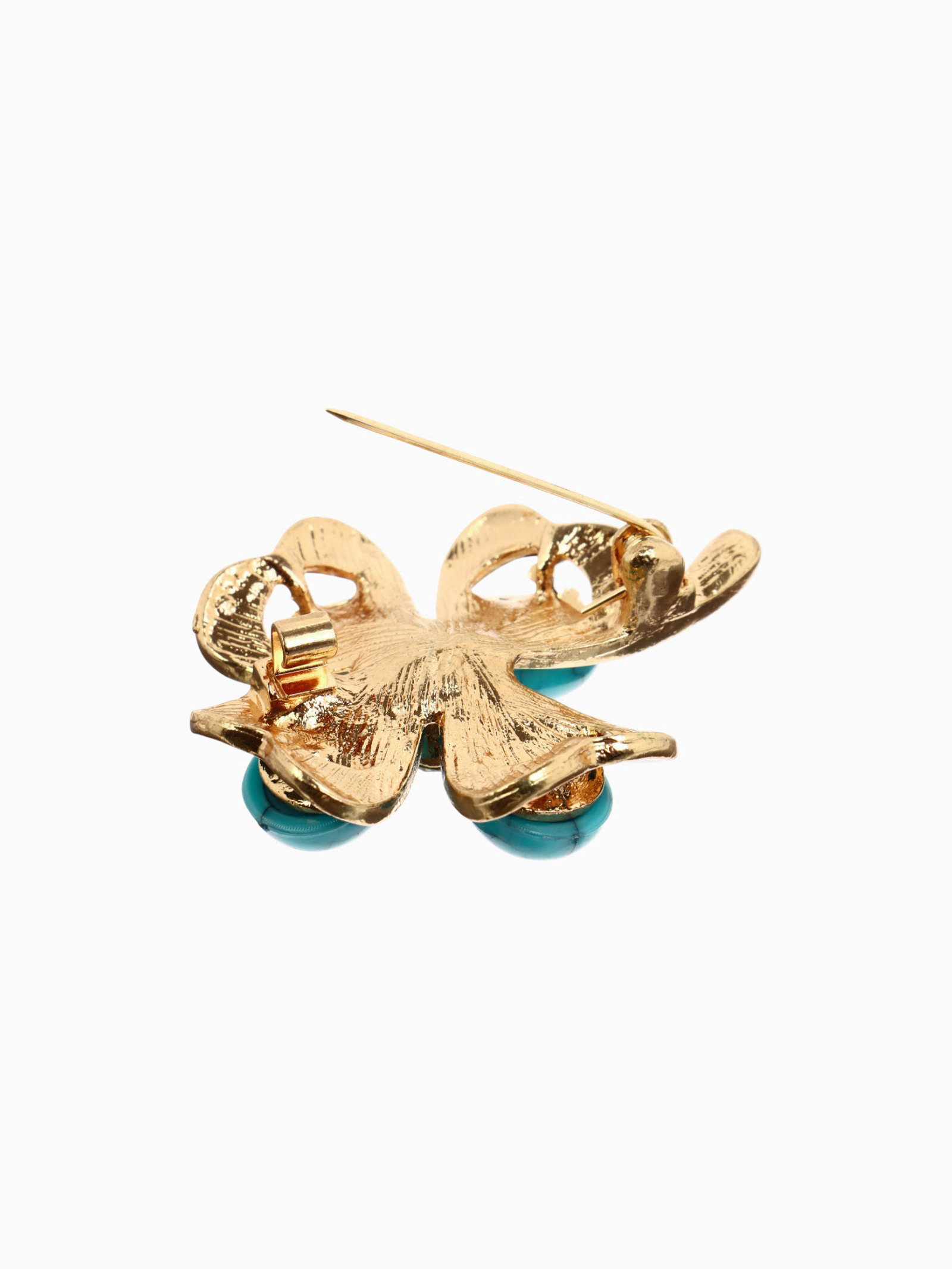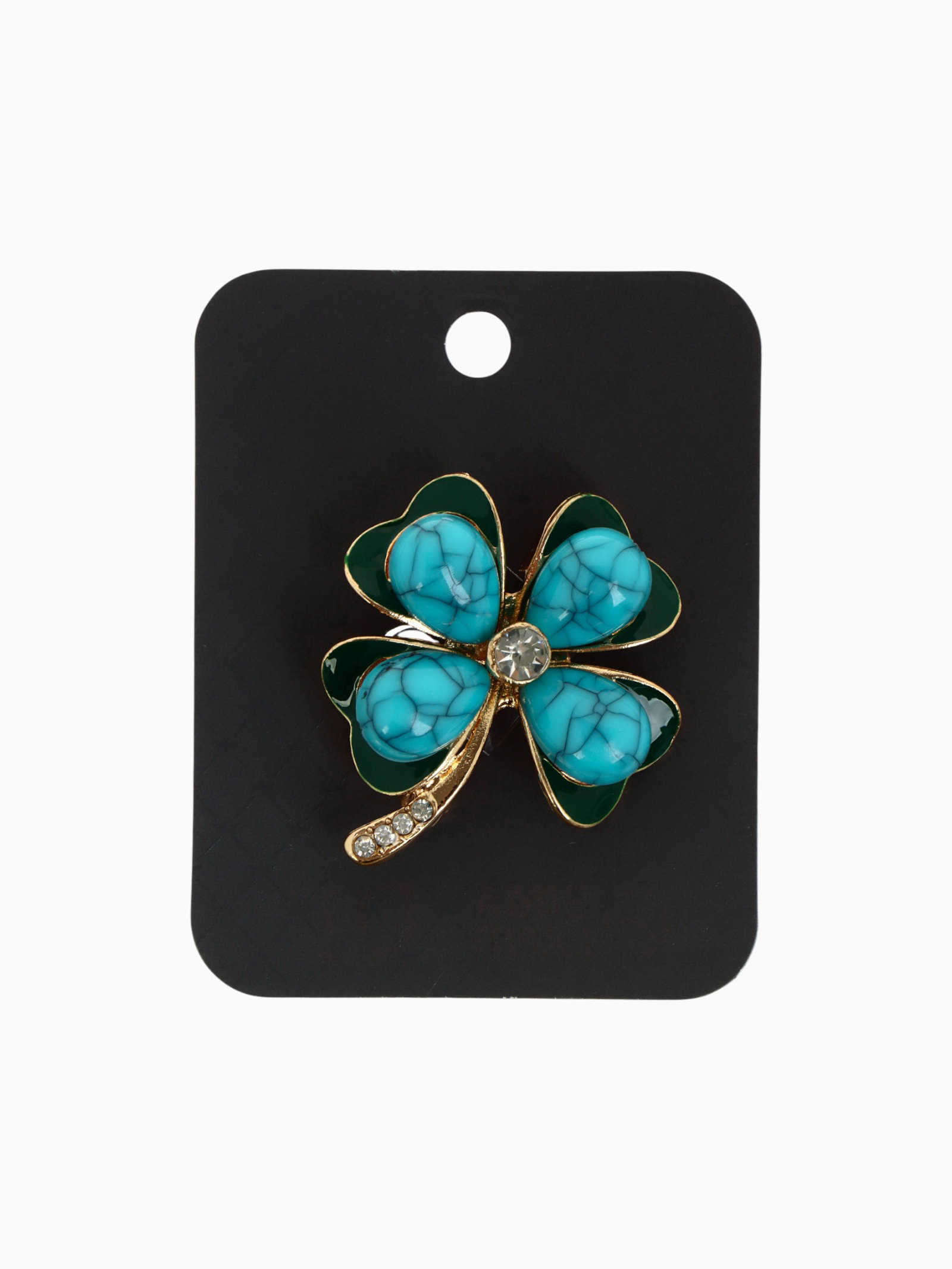 Брошь "Клевер" с бирюзой, цветная в золоте, 3.7x4x1.4 см., QF, Китай