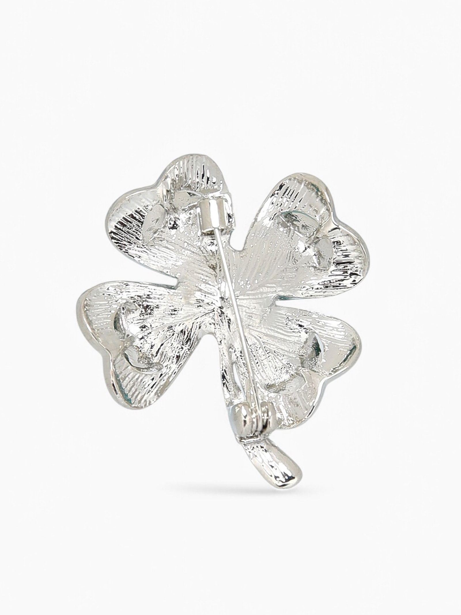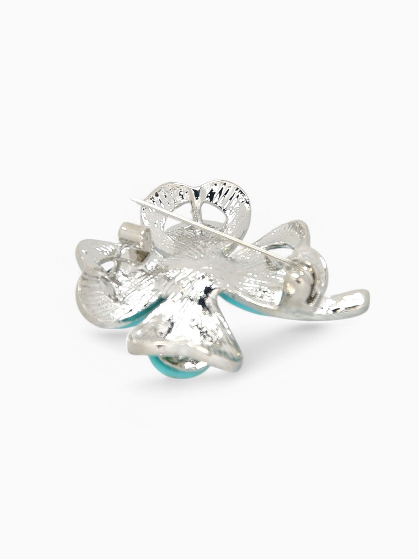 Брошь "Клевер" с бирюзой, цветная в серебре, 3.7x4x1.4 см., QF, Китай