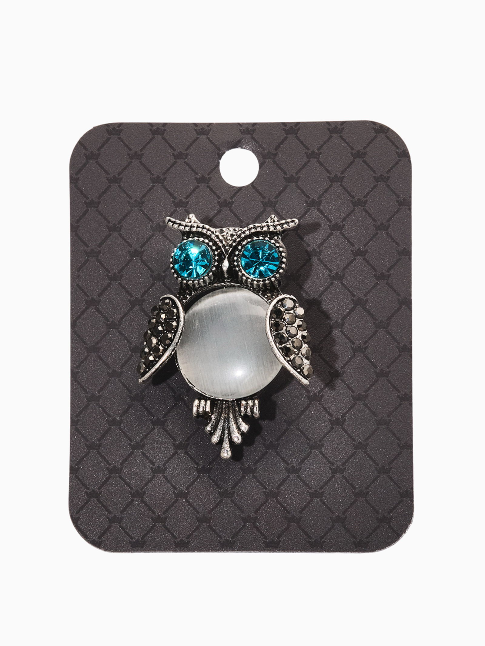 Брошь "Сова круглая", цвет бело-синий в чернёном серебре, 1.5x2.5x4 см., Queen fair, Китай