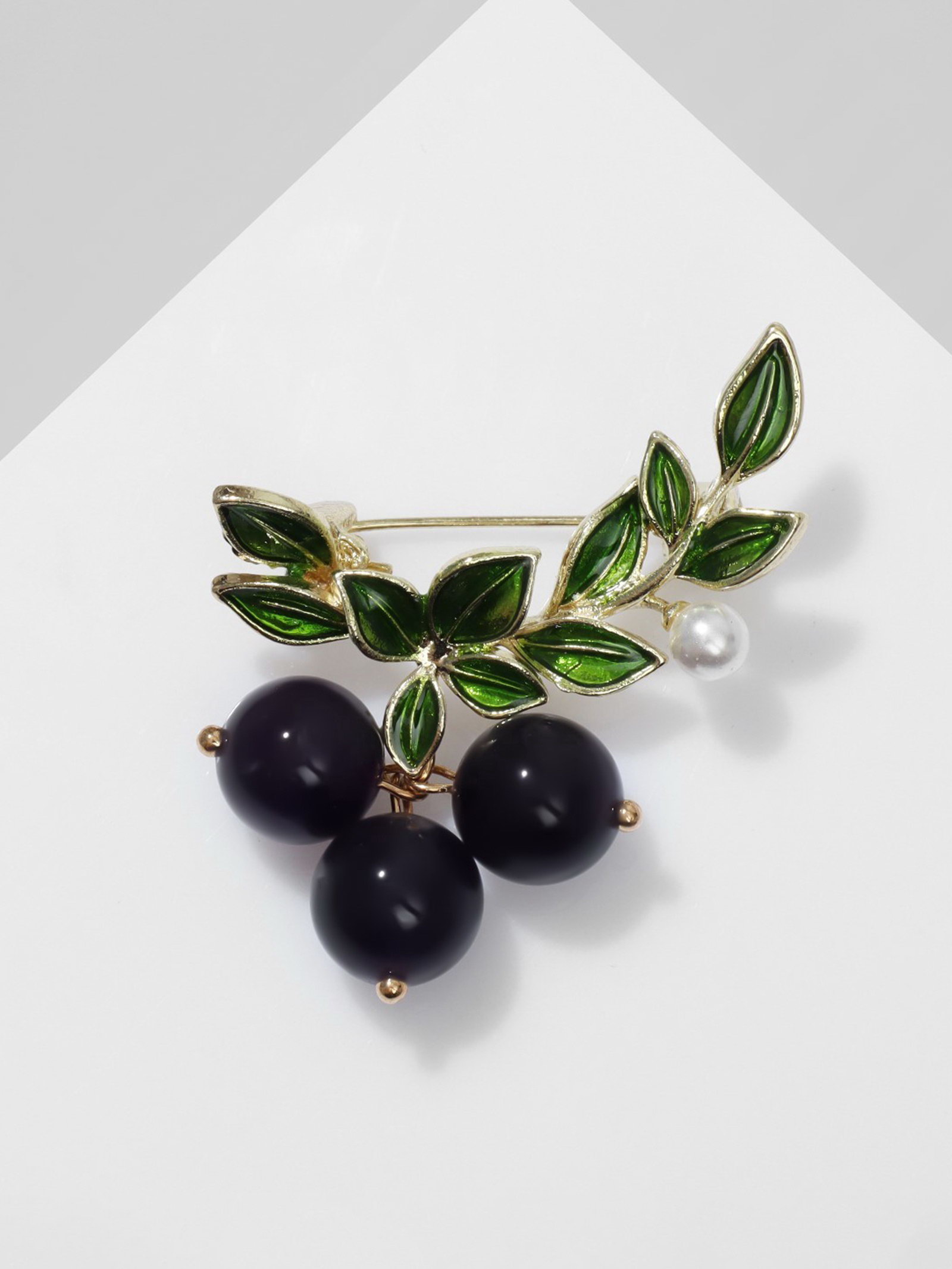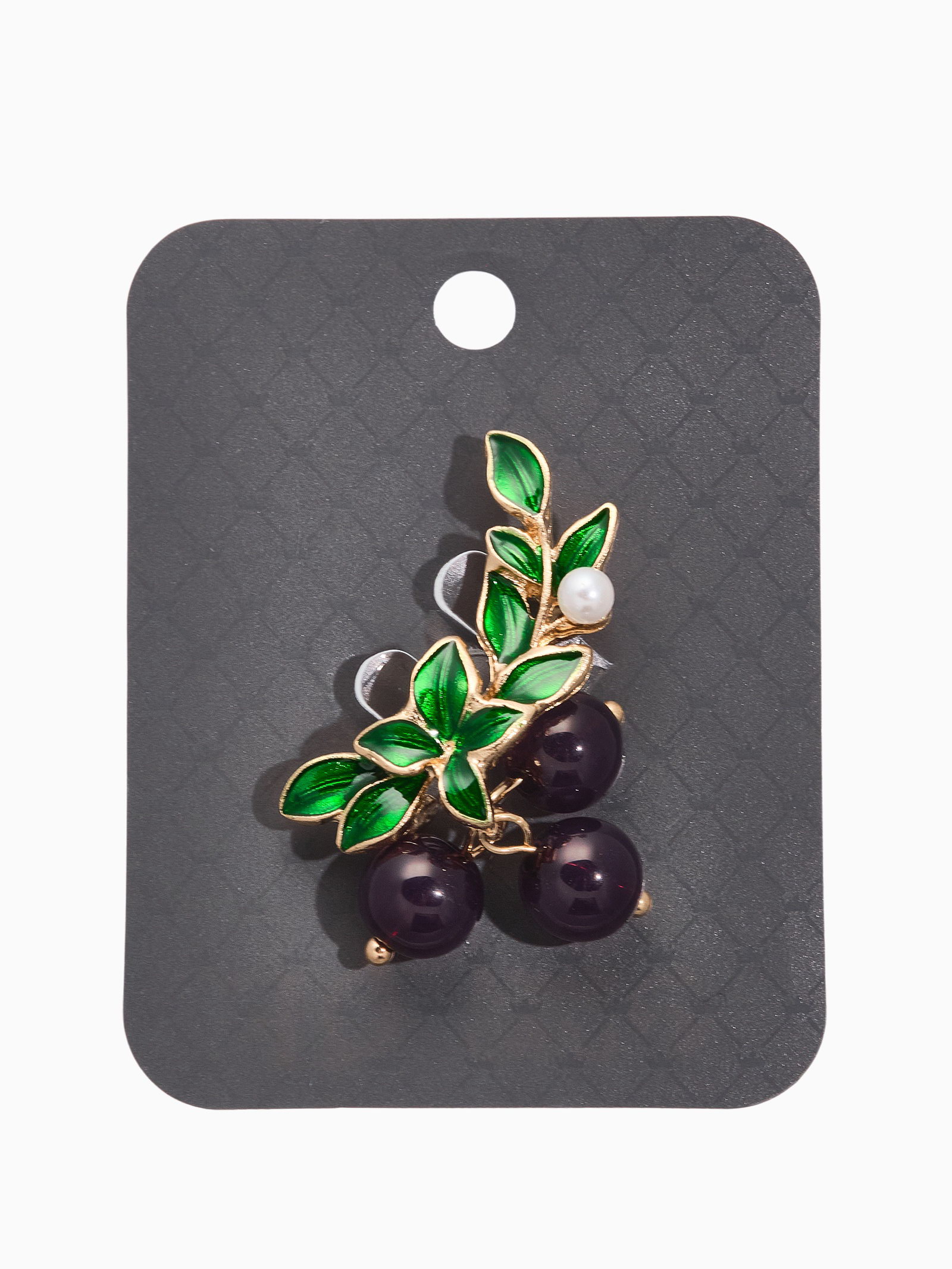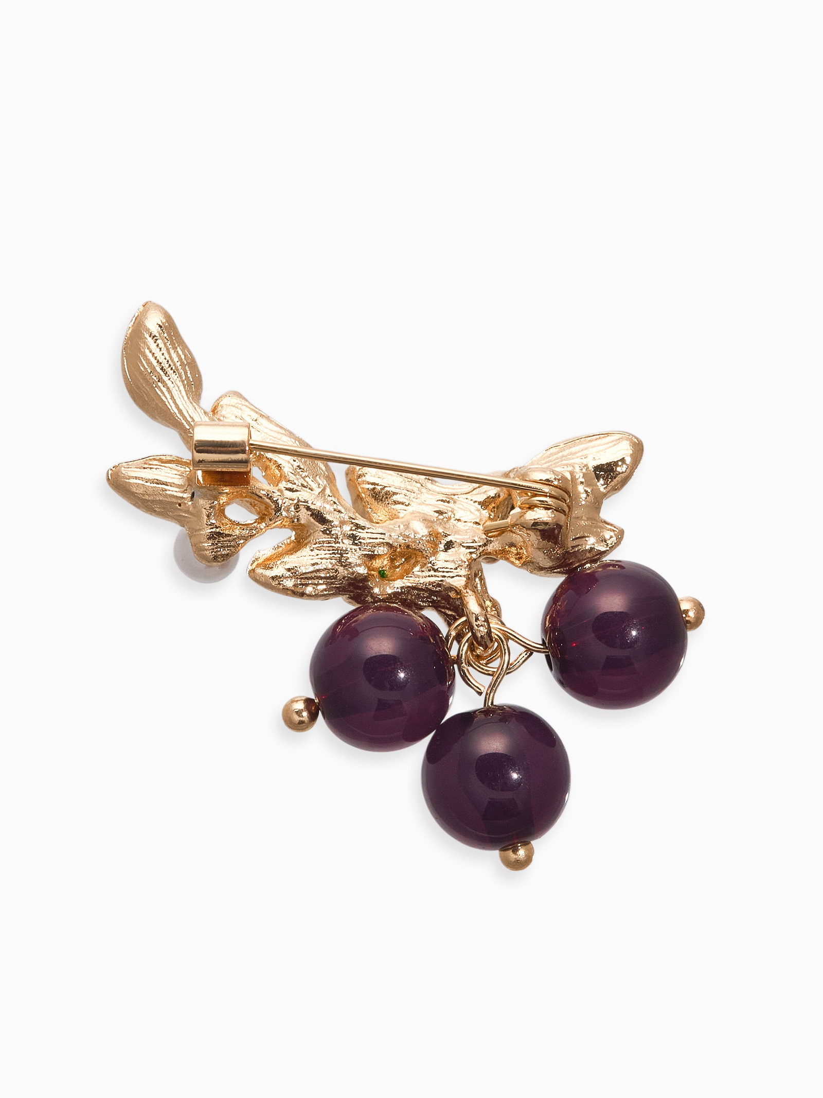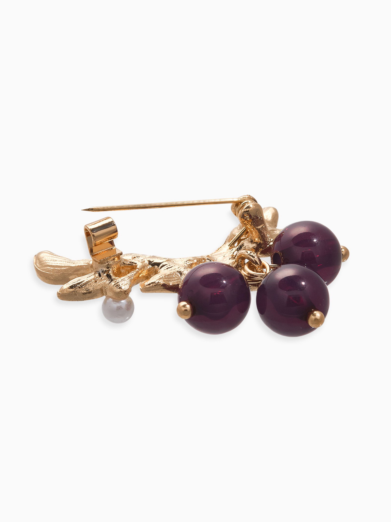 Брошь "Ягоды" аметист, цвет фиолетово-зелёный в золоте, 2.8x3.8x1 см., QF, Китай