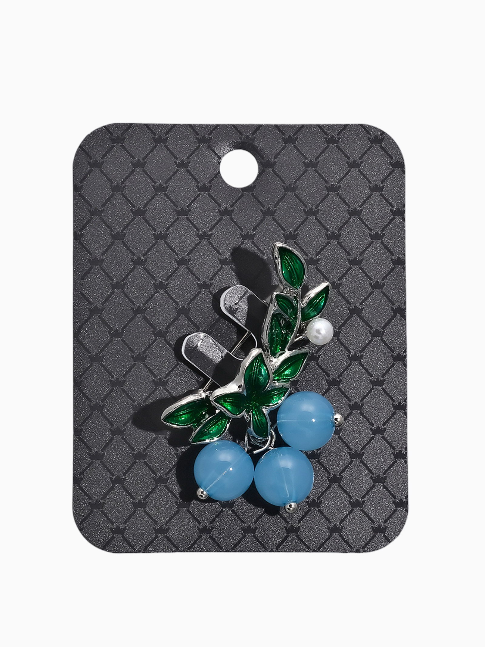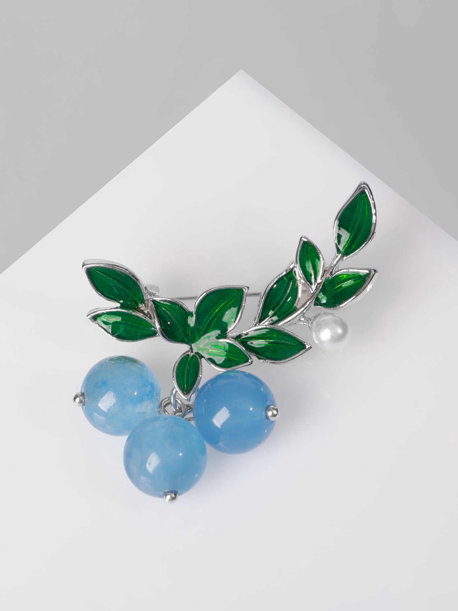 Брошь "Ягоды" агат, цвет зелёно-голубой в серебре, 2.8x3.8x1 см., QF, Китай