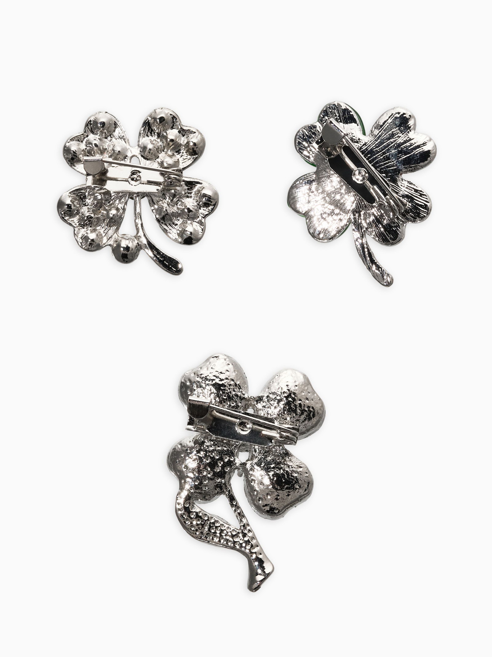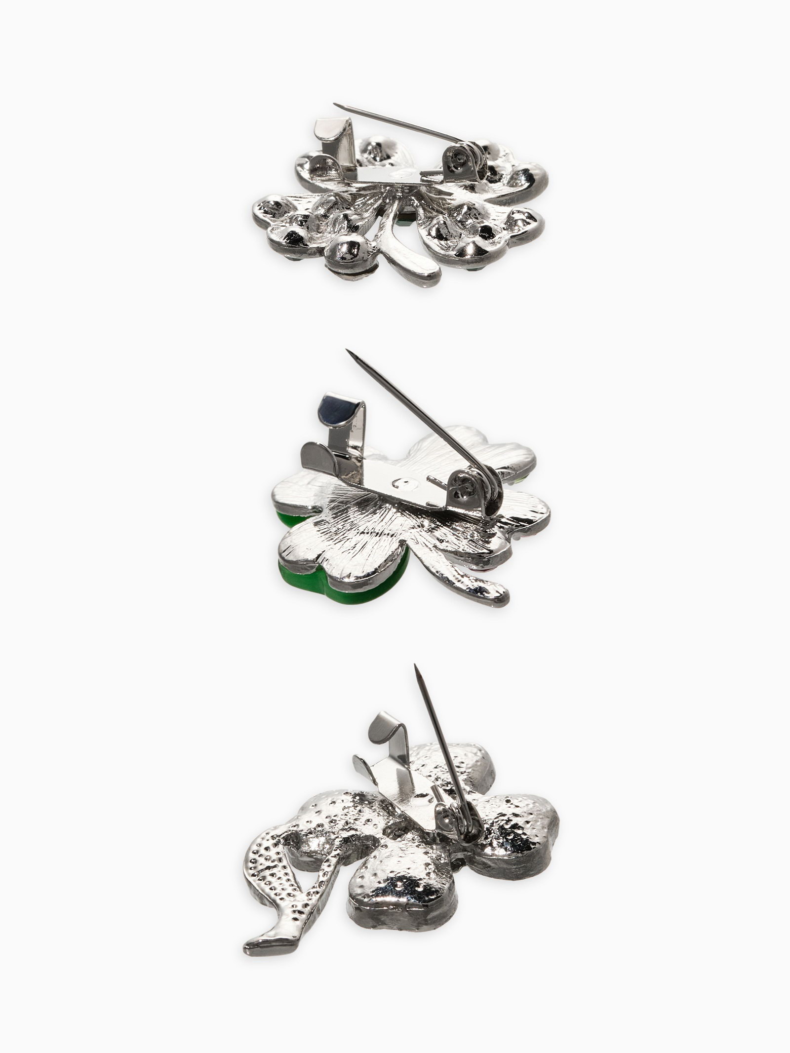 Броши "Клевер", набор 3 шт. зелёные в серебре, 7x8x1 см., QF, Китай