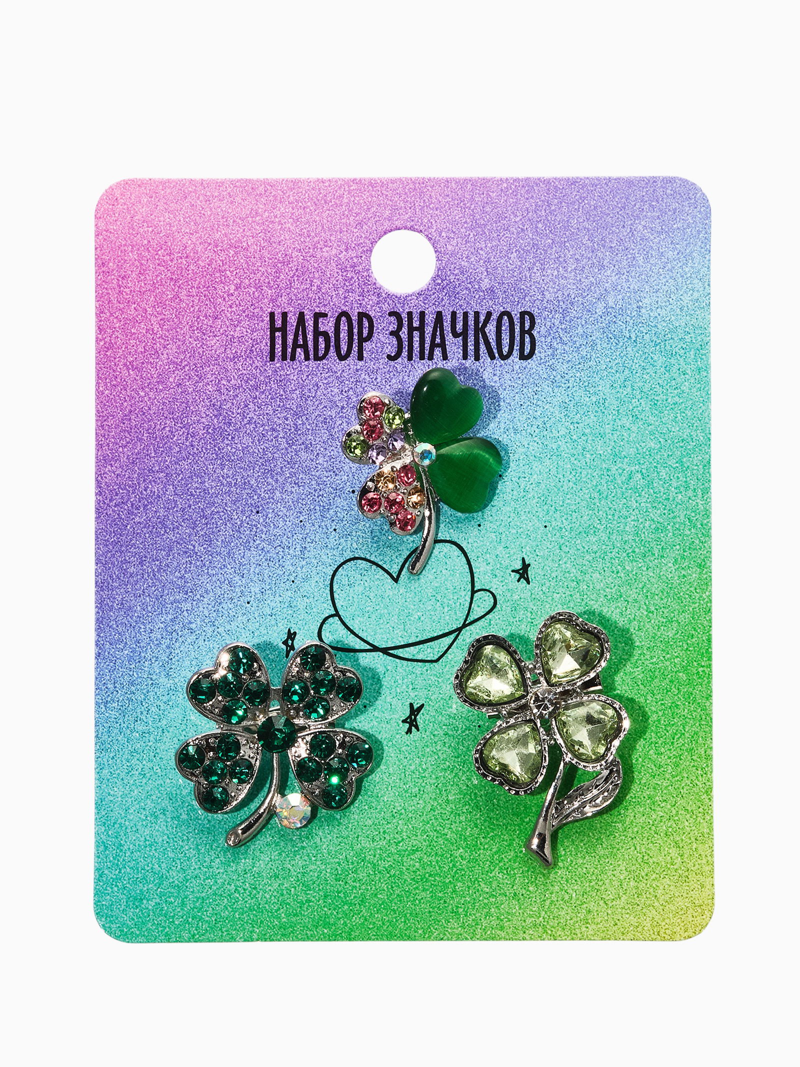 Тематика: Знаки, символы, обереги, Цветы и растения Размер упаковки: 5 x 2 x 6 см. tnved: 7117190000 Вставка/Подвеска: Стразы Материал основания: Металл Цвет фурнитуры: Серебряный Цвет: Зелёный Для кого: Для женщины Набор: Да Позвольте природе внести магию в ваш образ! Набор из трёх брошей "Клевер" станет вашим личным амулетом, дарящим счастье и удачу. Легкие и воздушные, они исполнены в нежных зеленых оттенках с переливающимся эффектом благодаря искусно подобранным стразам.