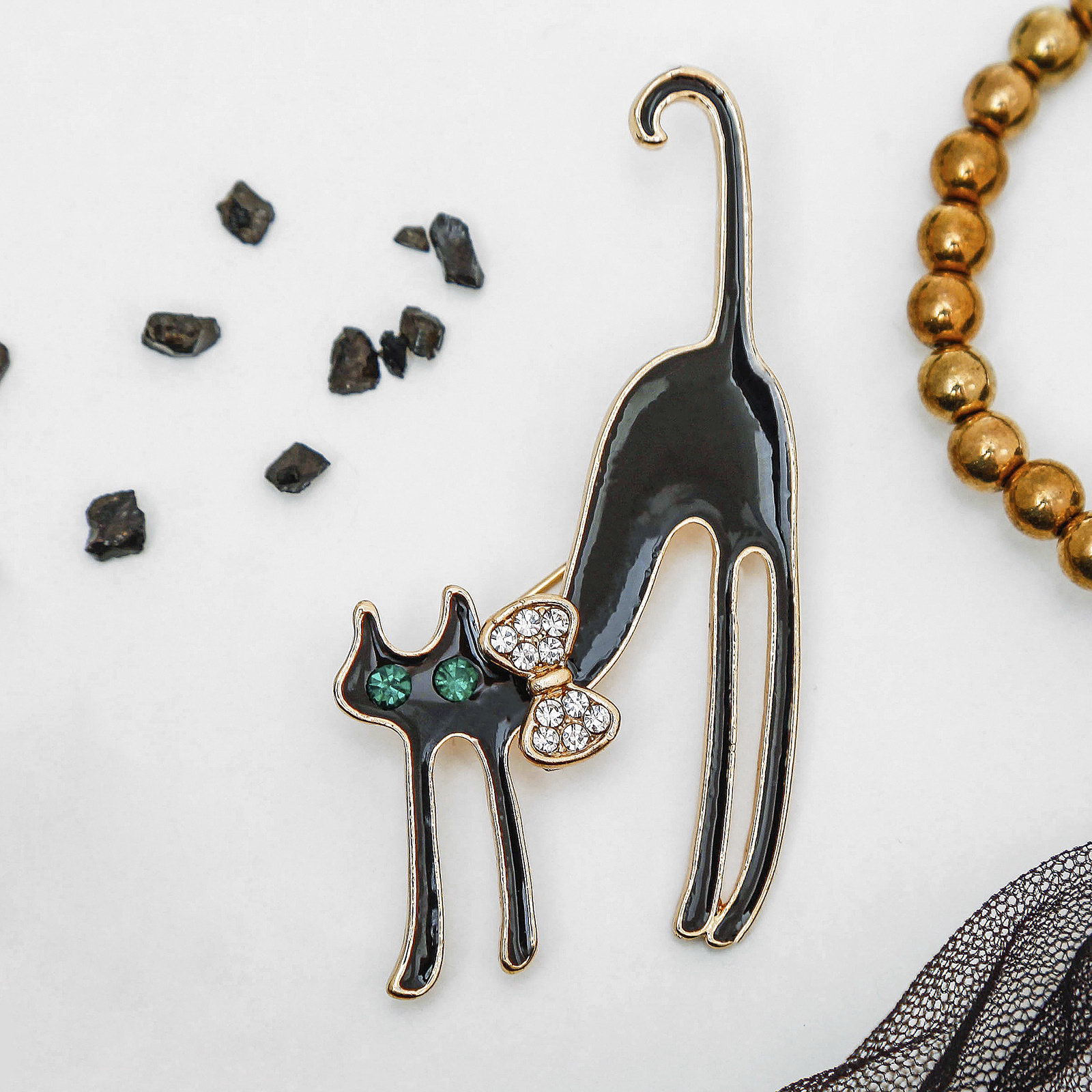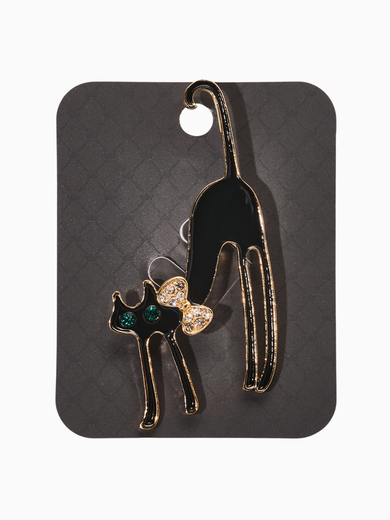 Брошь "Кошка грациозная с бантиком", цвет чёрный в золоте, 3.5x6x1 см., QF, Китай
