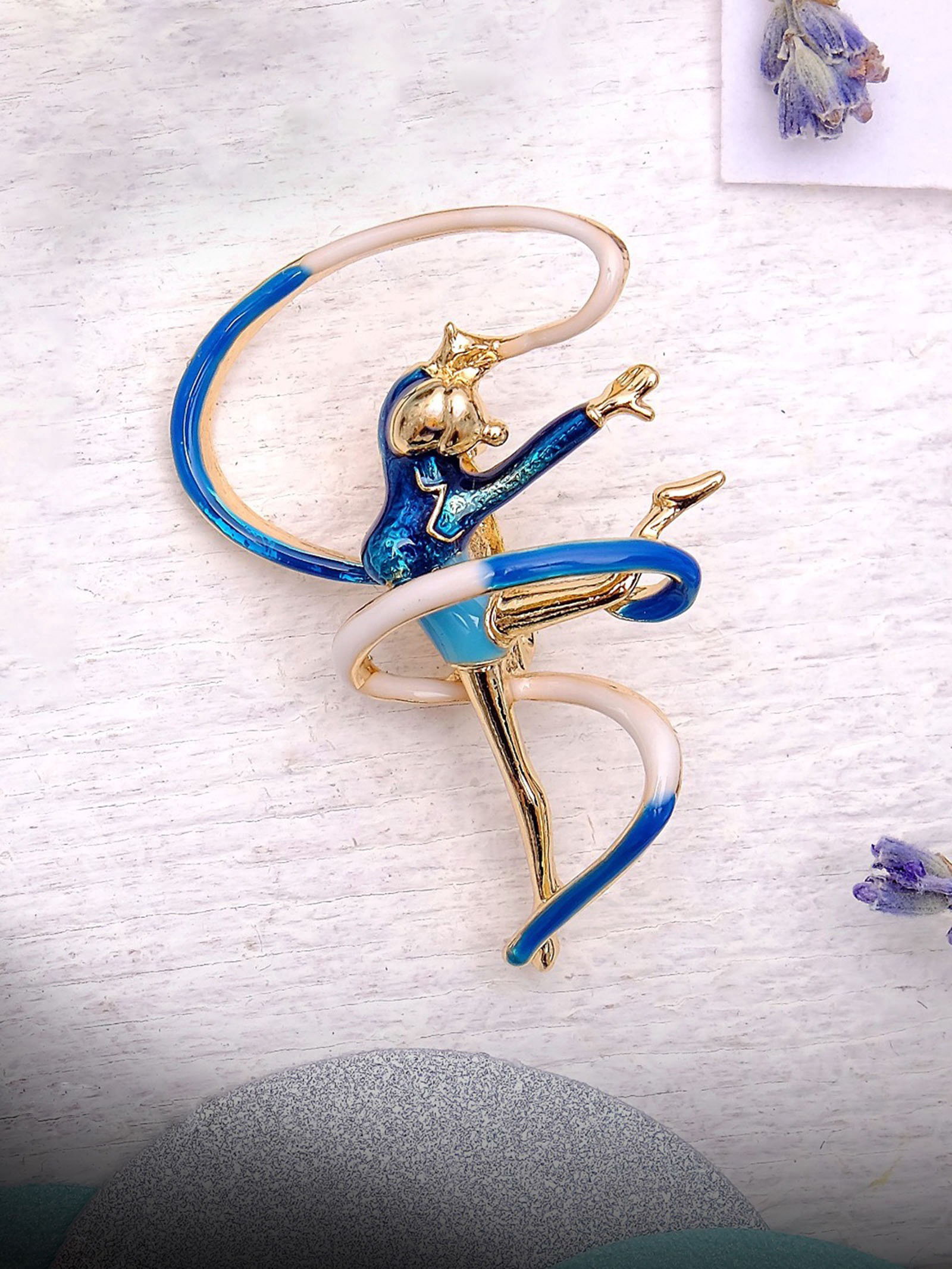 Брошь "Гимнастка" с лентой, цвет синий в золоте, 4x3x1.5 см., QF, Китай