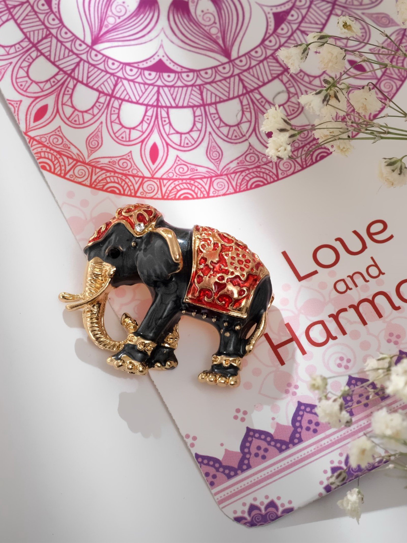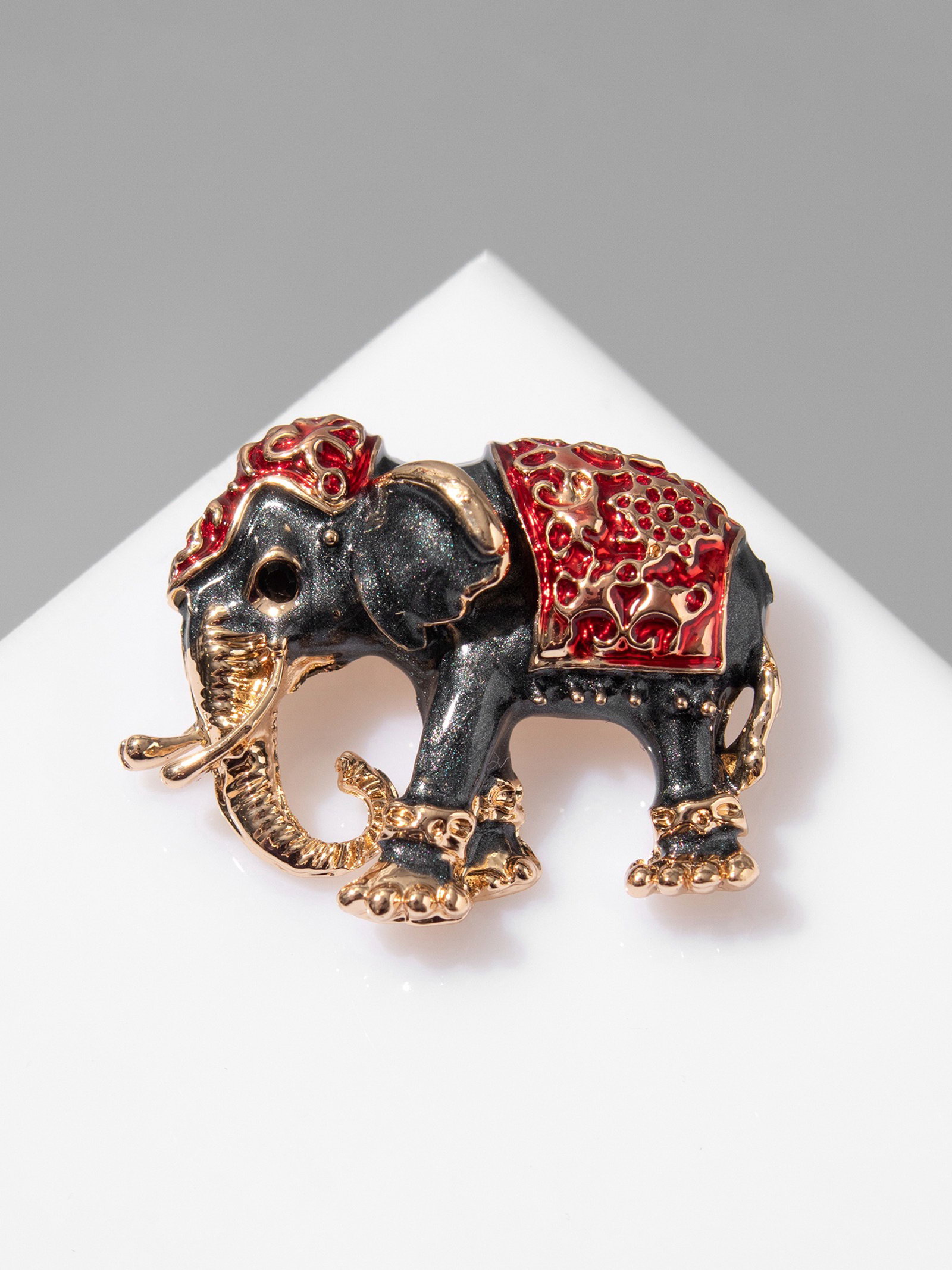 Брошь "Слон индийский", цвет красно-серый в золоте, 3x2x1 см., QF, Китай