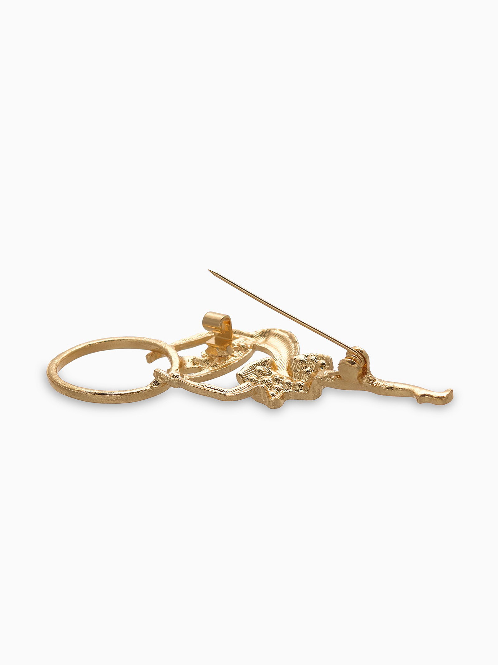 Брошь "Гимнастка" с хулахупом, фиолетовая в золоте, 3x6.5x1.5 см., QF, Китай