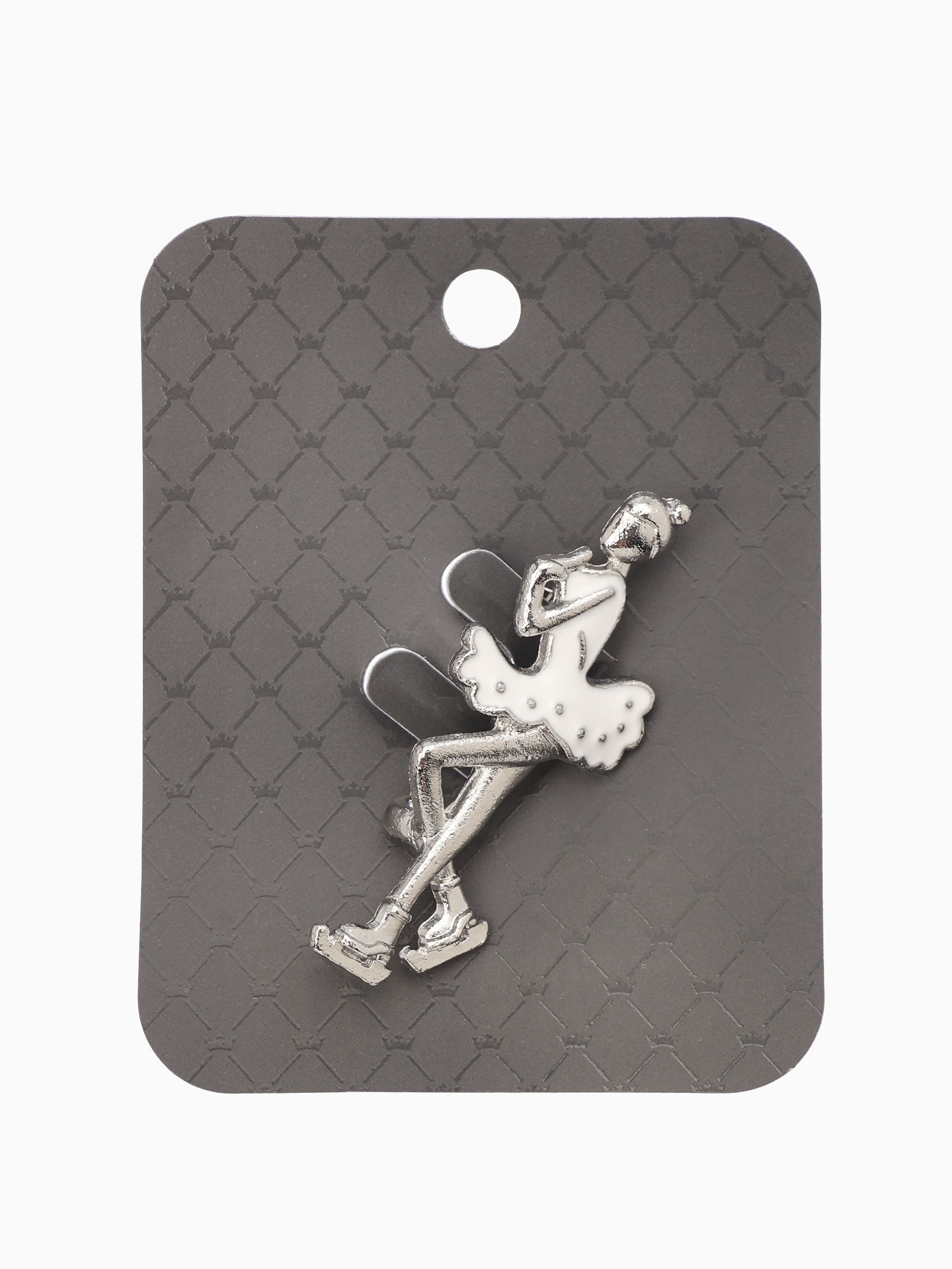 Брошь "Фигуристка", белая в серебре, 1.7x4.5x1.5 см., QF, Китай