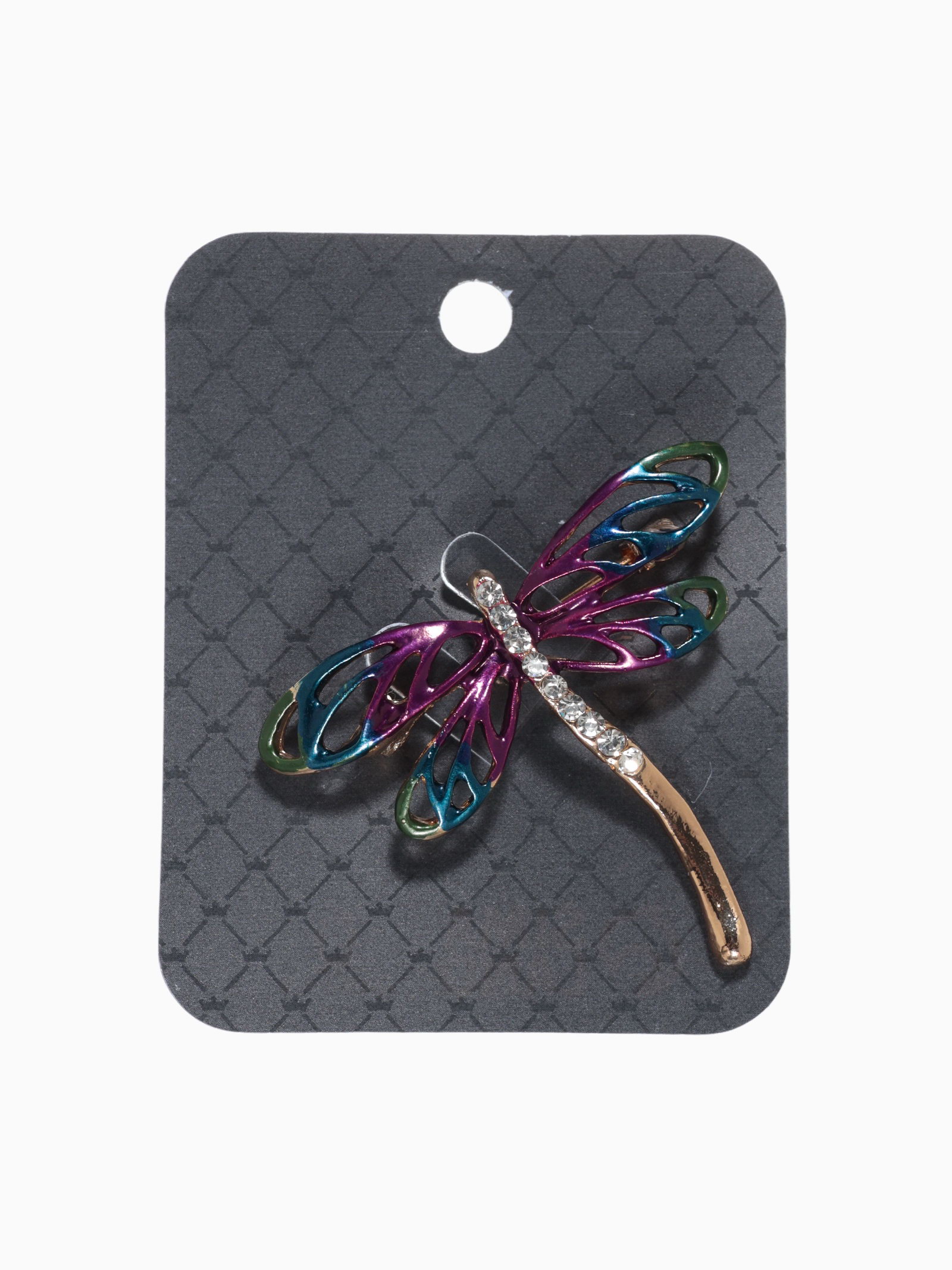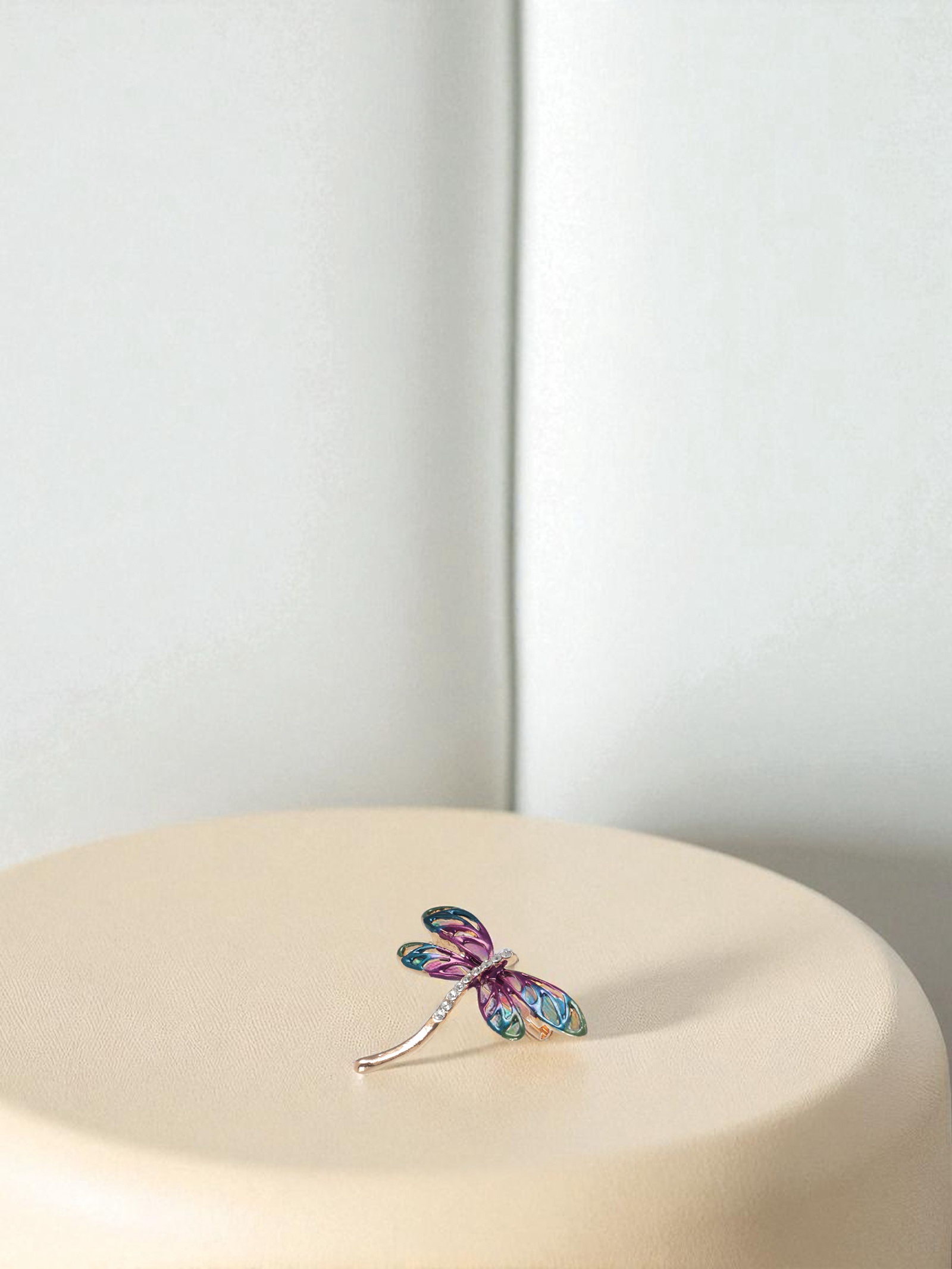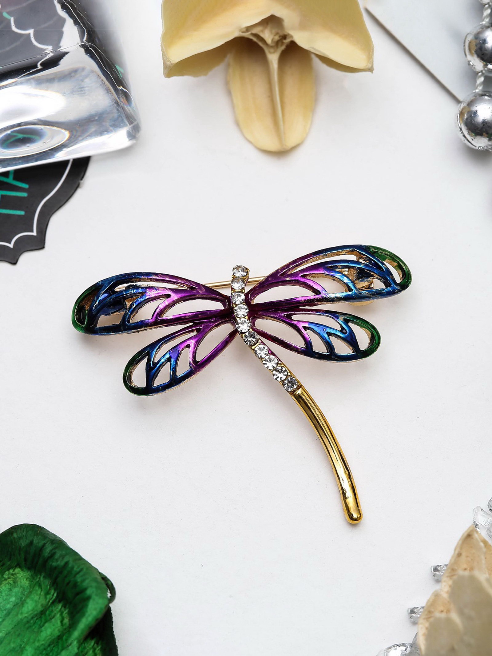 Брошь "Стрекозка" радужная, сине-фиолетовая в золоте, 2.5x5x1.5 см., QF, Китай