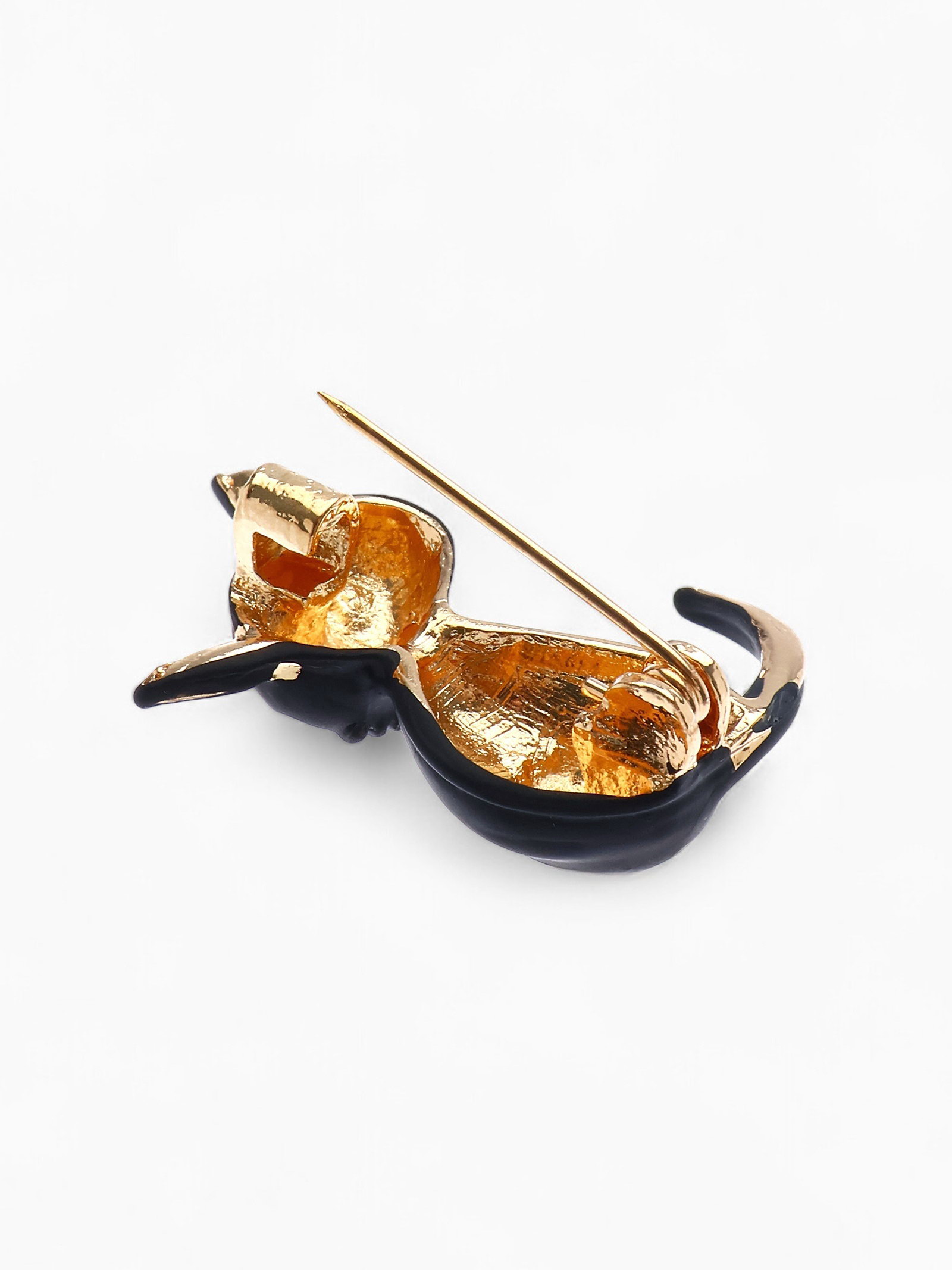 Брошь "Котёнок", цвет чёрный глянцевый в золоте, 2x3.5x1.5 см., QF, Китай