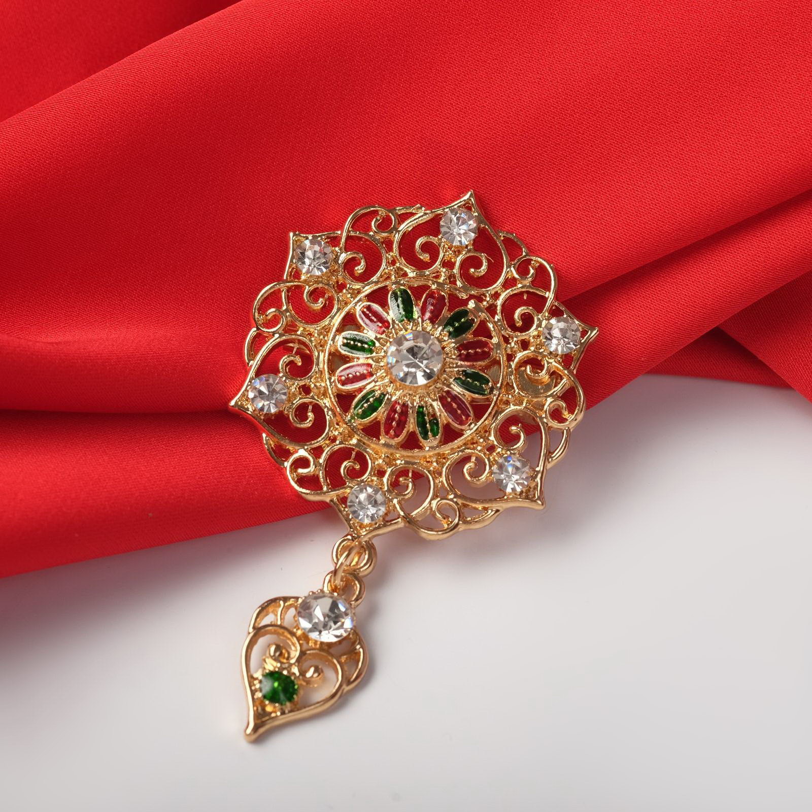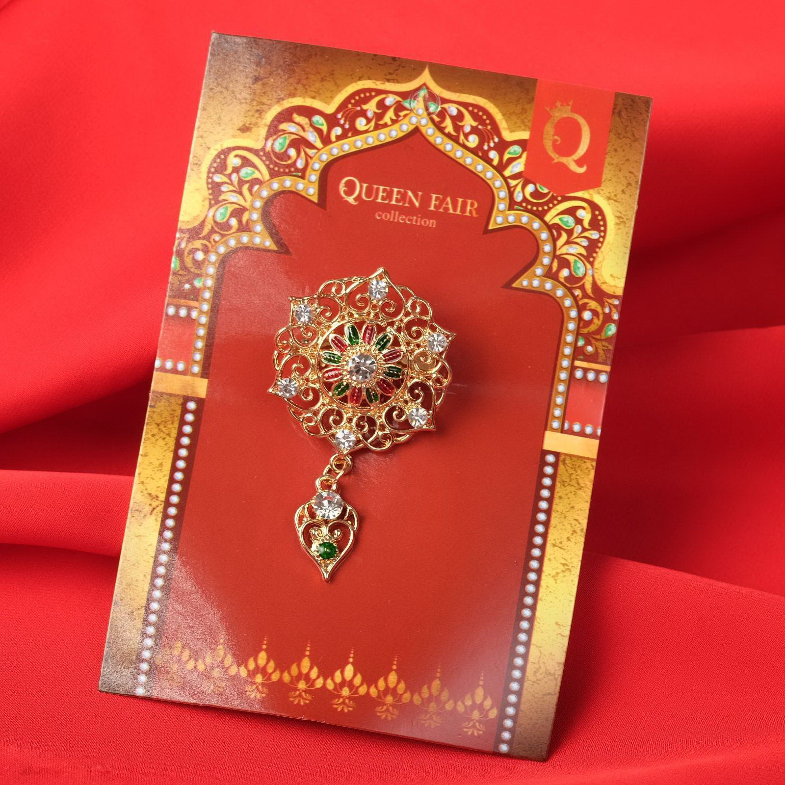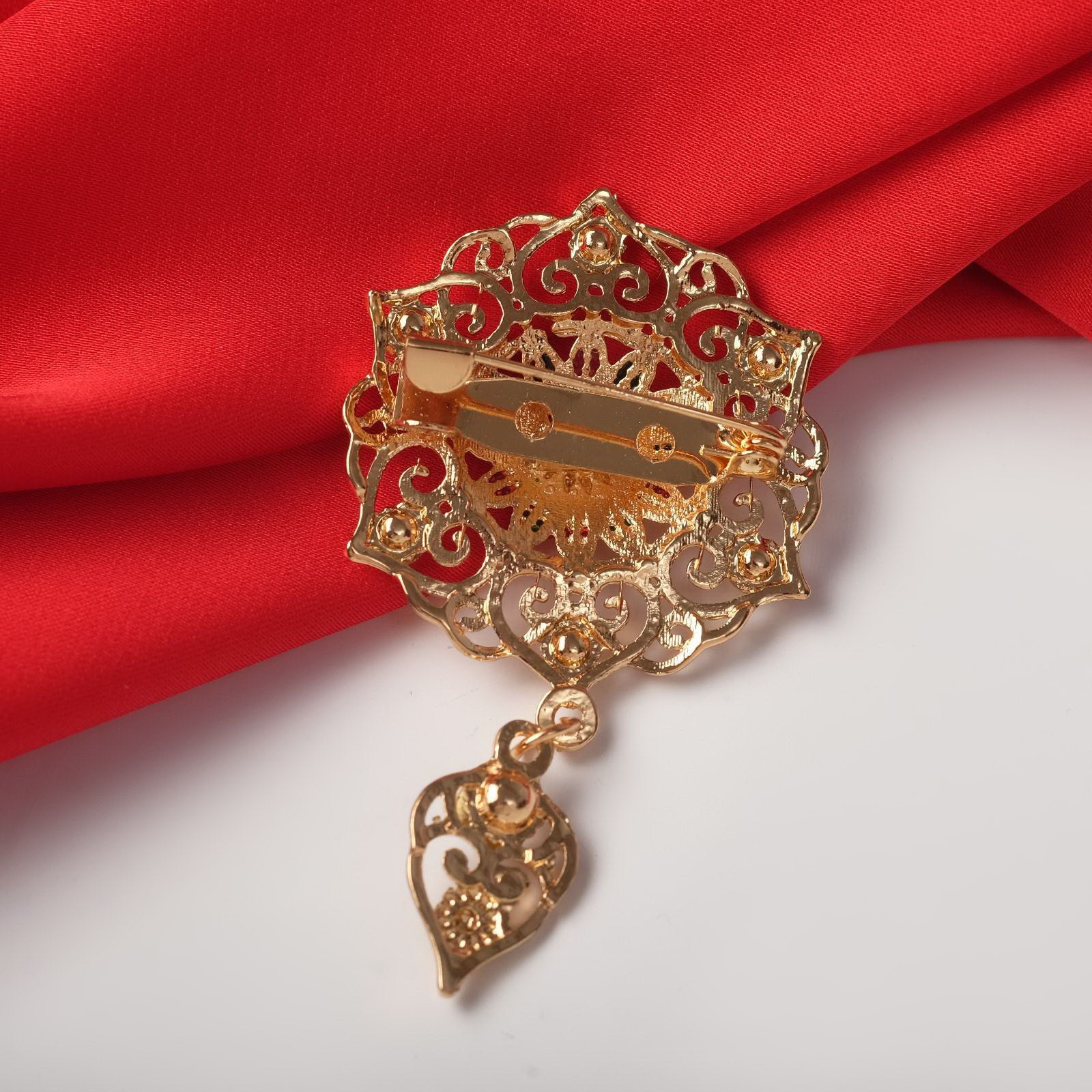 Брошь "1000 и1 ночь" круг с подвеской, цветная в золоте, 3.3x5.5x1 см., QF, Китай