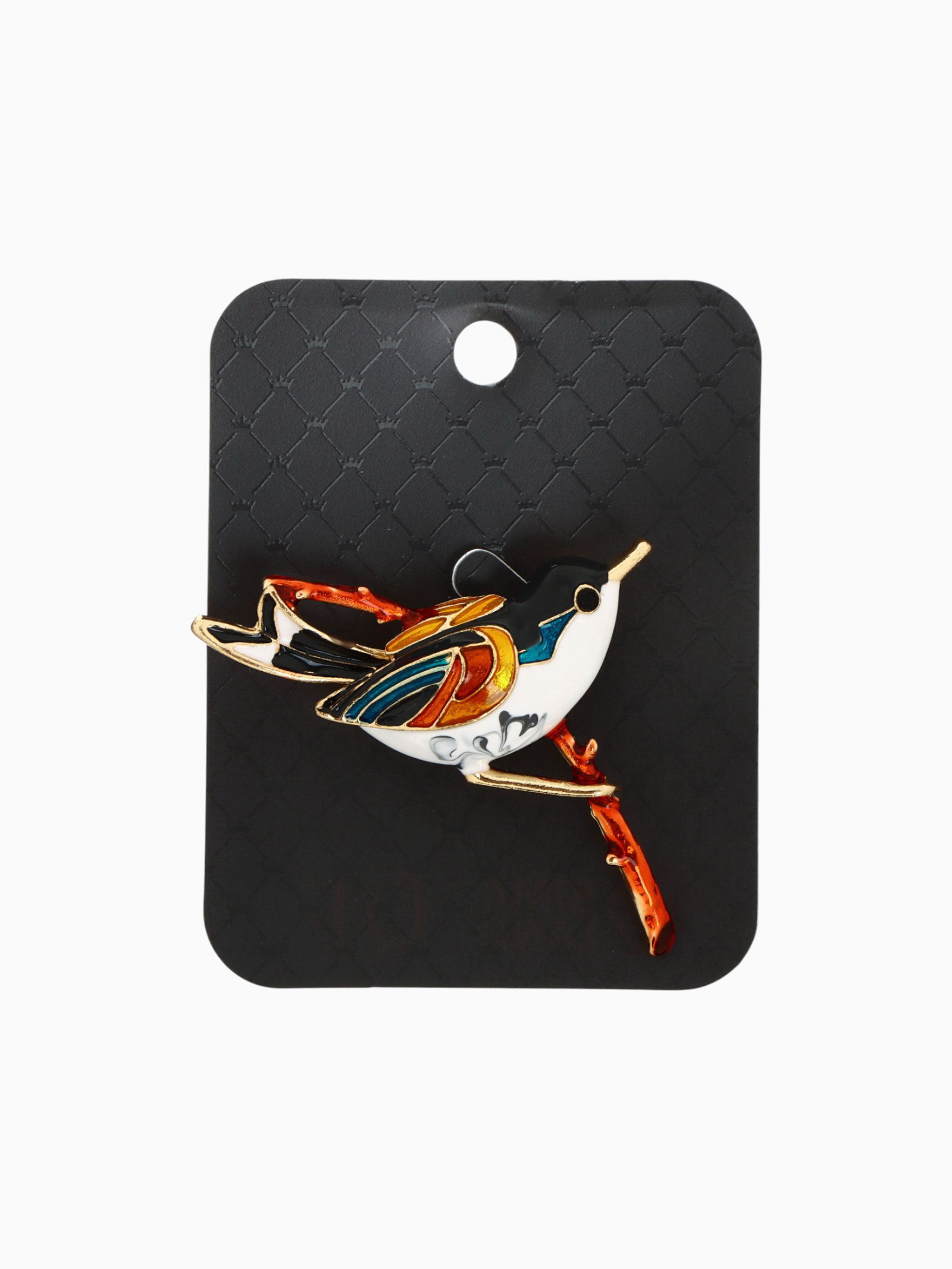 Брошь "Птичка" чижик, цветная в золоте, 4x6x1.7 см., QF, Китай