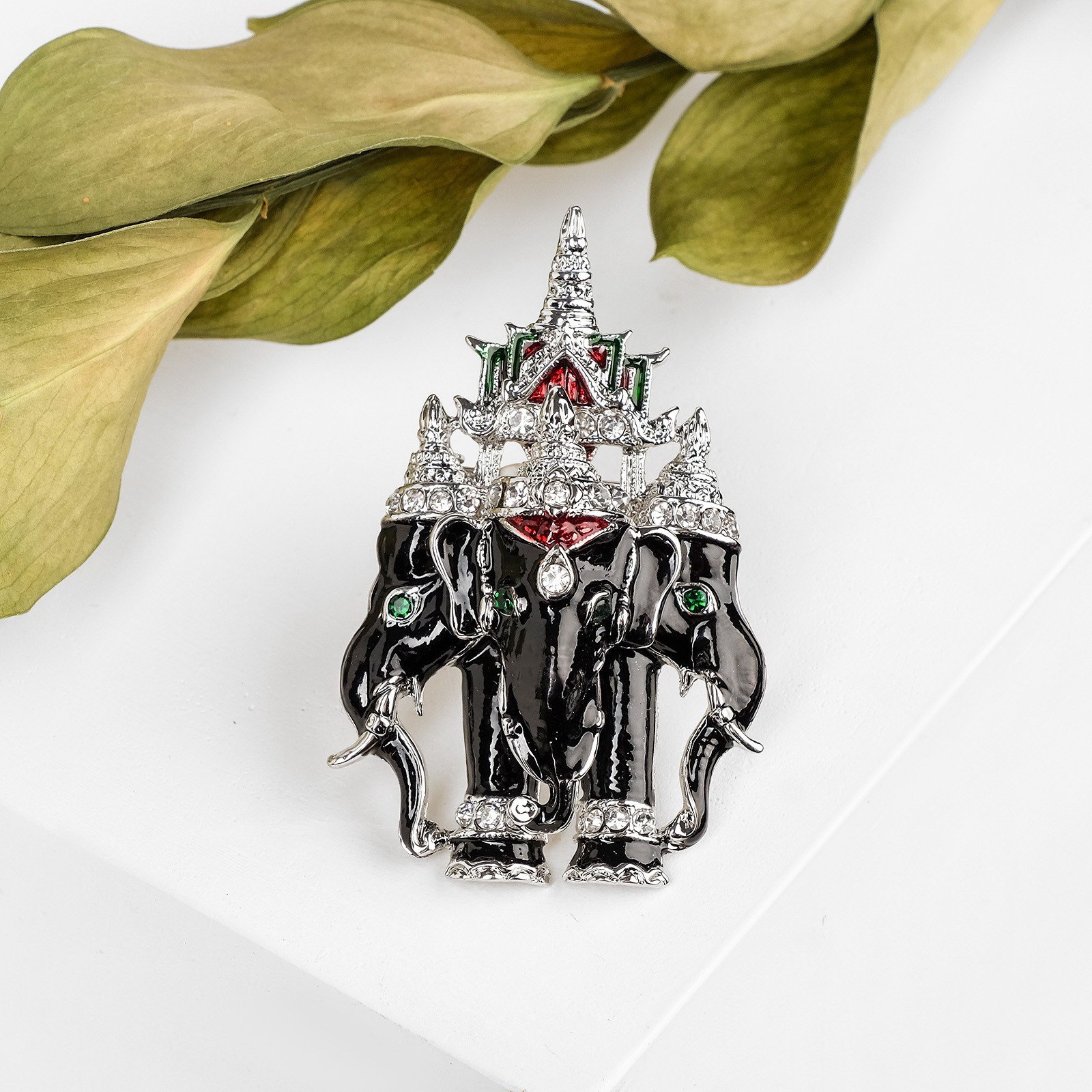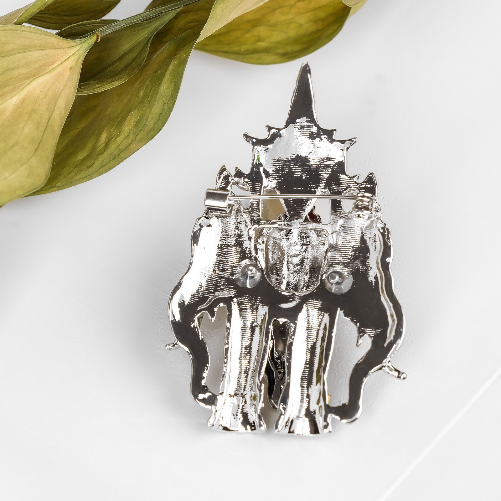 Брошь "Слоны" три, цвет чёрно-красный в серебре, 4x6x1 см., QF, Китай