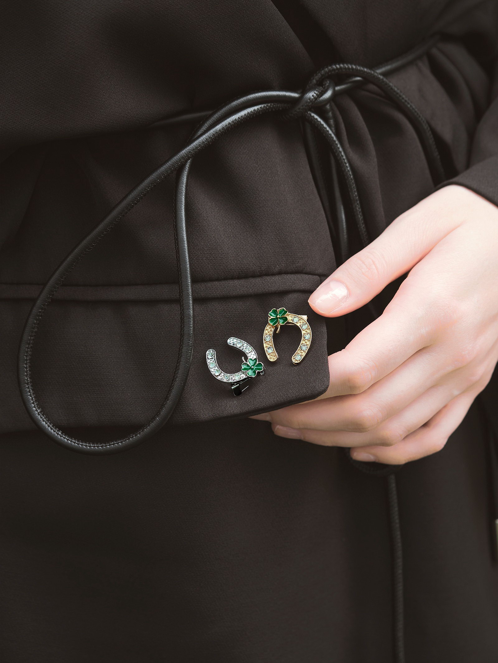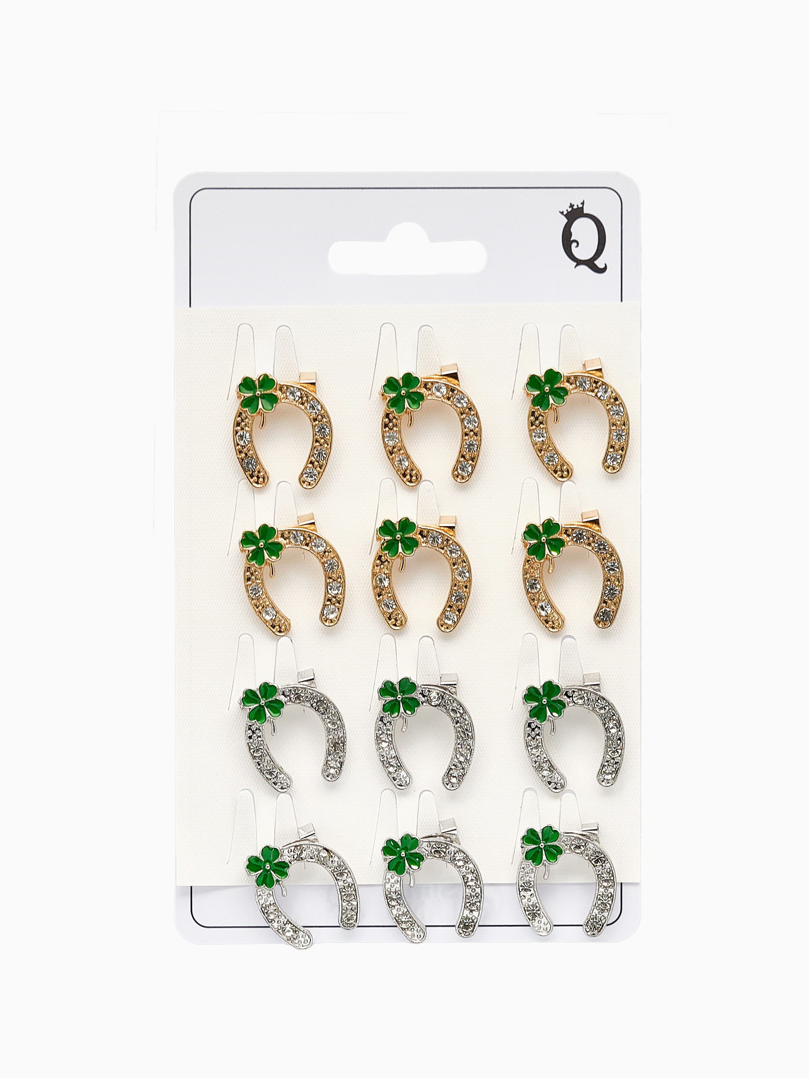 Брошь "Подкова" на удачу с клевером, МИКС, 2x2.3x0.5 см., QF, Китай