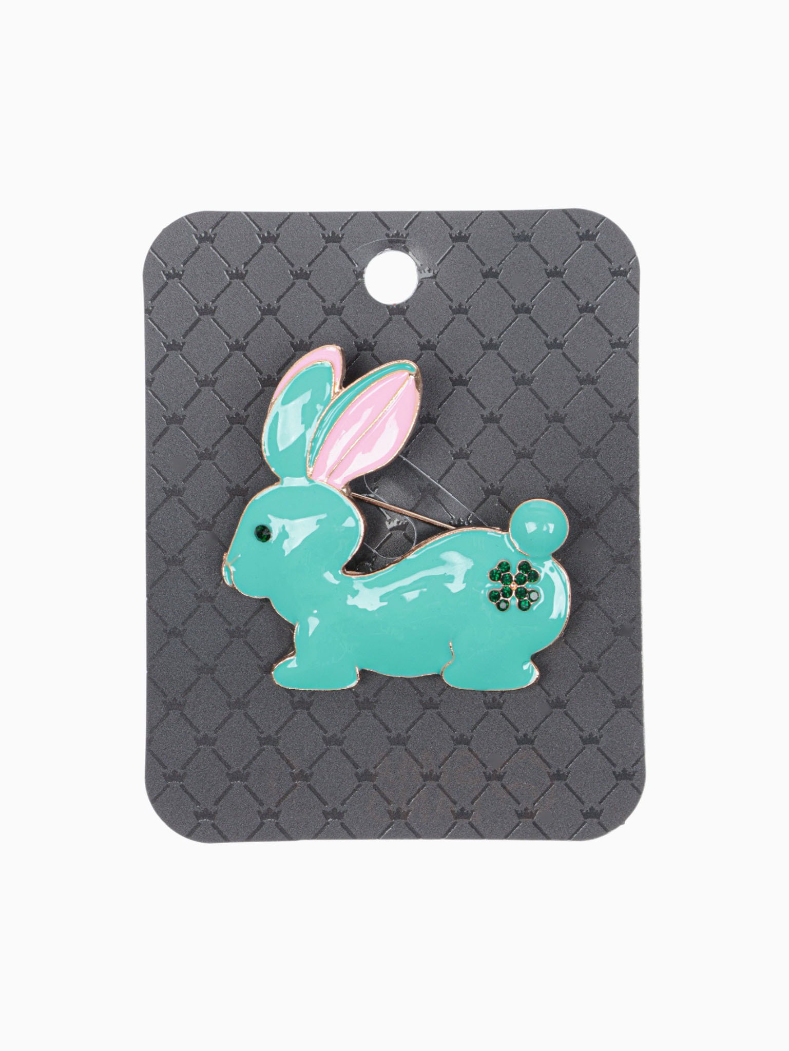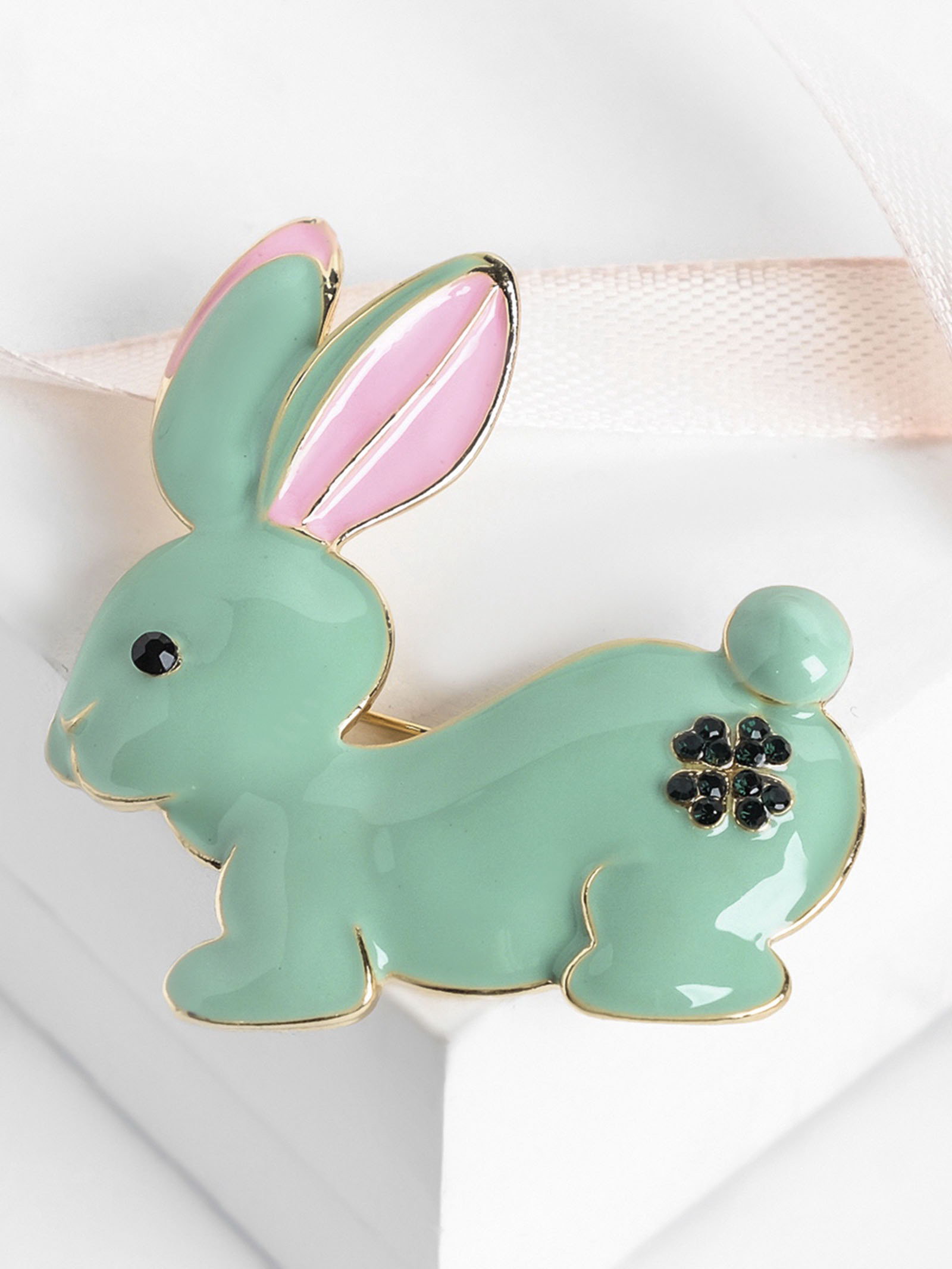 Брошь "Зайчонок", цвет мятный в золоте, 4.5x4.5x1 см., QF, Китай