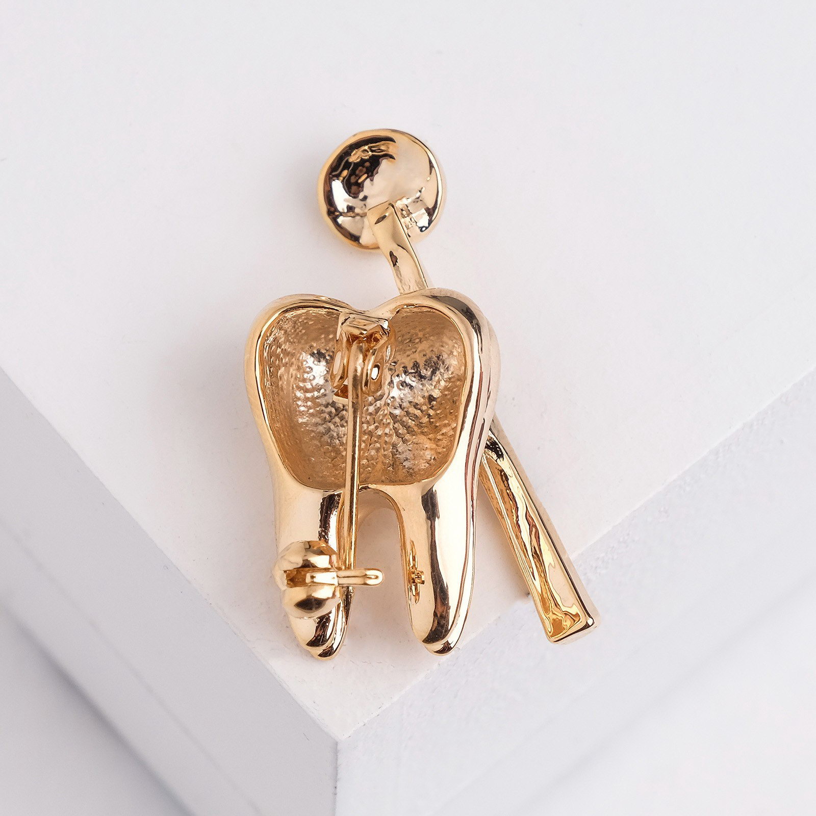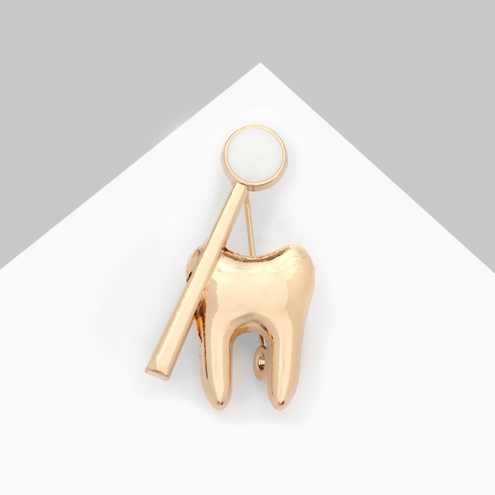 Брошь "Зуб с зеркалом", цвет белый в золоте, 1.6x3.2x1 см., QF, Китай