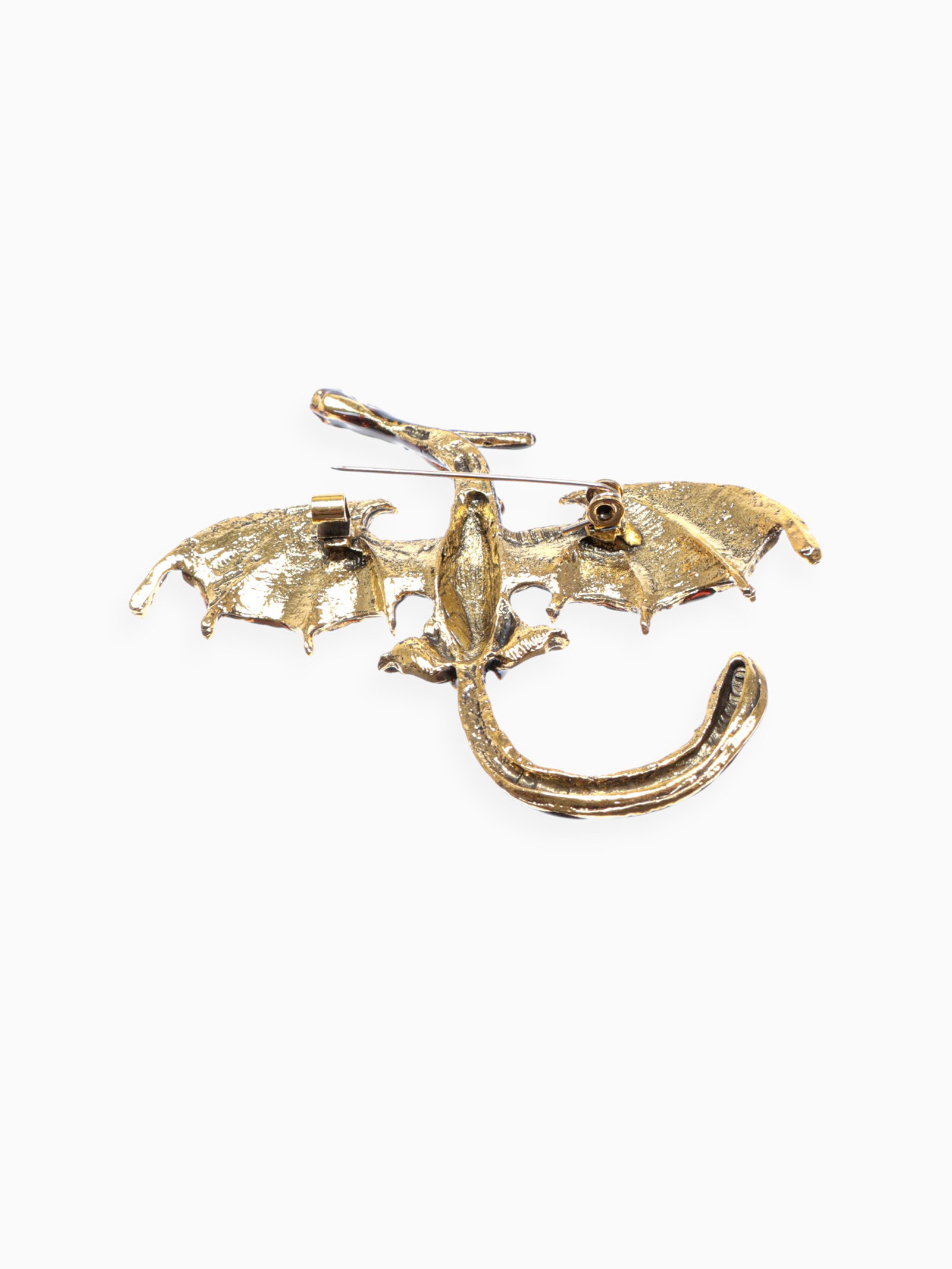 Брошь "Дракон" летящий, цвет сливовый в чернёном золоте, 7.8x7.2x1 см., QF, Китай