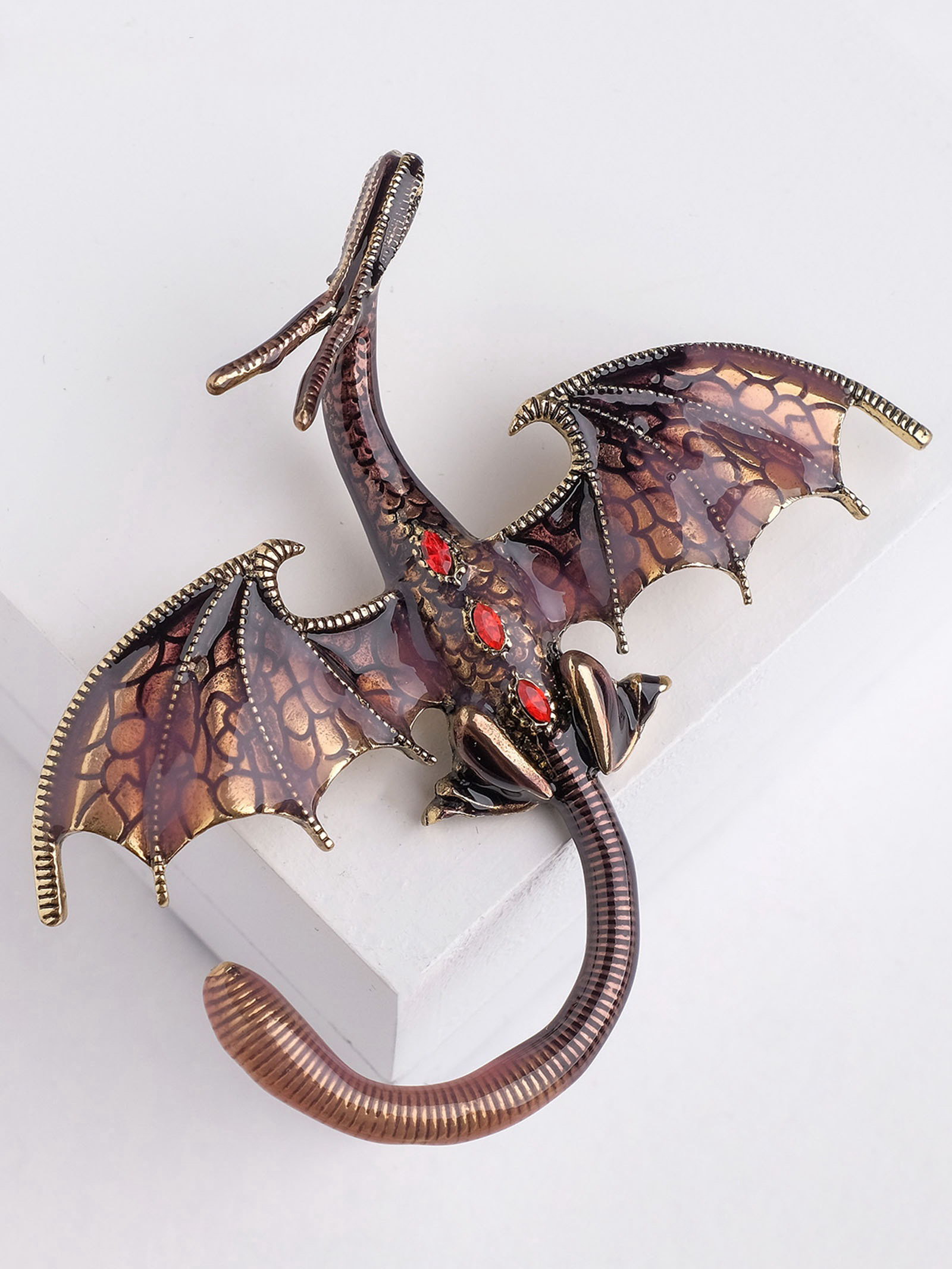 Тематика: Дракон, монстрик, Животные Вид: Броши, Брошь, Брошь Вставка/Подвеска: Стразы, Эмаль Размер упаковки: 5.5 x 1.8 x 7 см. Материал основы: Металл Материал основания: Металл Бижутерия с открыткой: Нет Тематика праздника: Универсальная тематика Для кого: Для женщины Составляющие набора: Брошь tnved: 7117190000 Длина, см: 7.2 Набор: Нет Цвет фурнитуры: Чернёное золото Цвет: Бордовый Погрузитесь в мир волшебства и загадок с этой удивительной брошей в виде летящего дракона. С длиной 7,2 см и сливовым цветом, она станет ярким акцентом в вашем образе, привнося нотку мистики и силы. Изготовленная из прочного металла с чернёным золотым покрытием, брошь не только выглядит эффектно, но и отличается высокой долговечностью. Эмалевая отделка и блестящие стразы придают ей особый шарм, делая её идеальным аксессуаром для женщин любого возраста от внучек до бабушек.