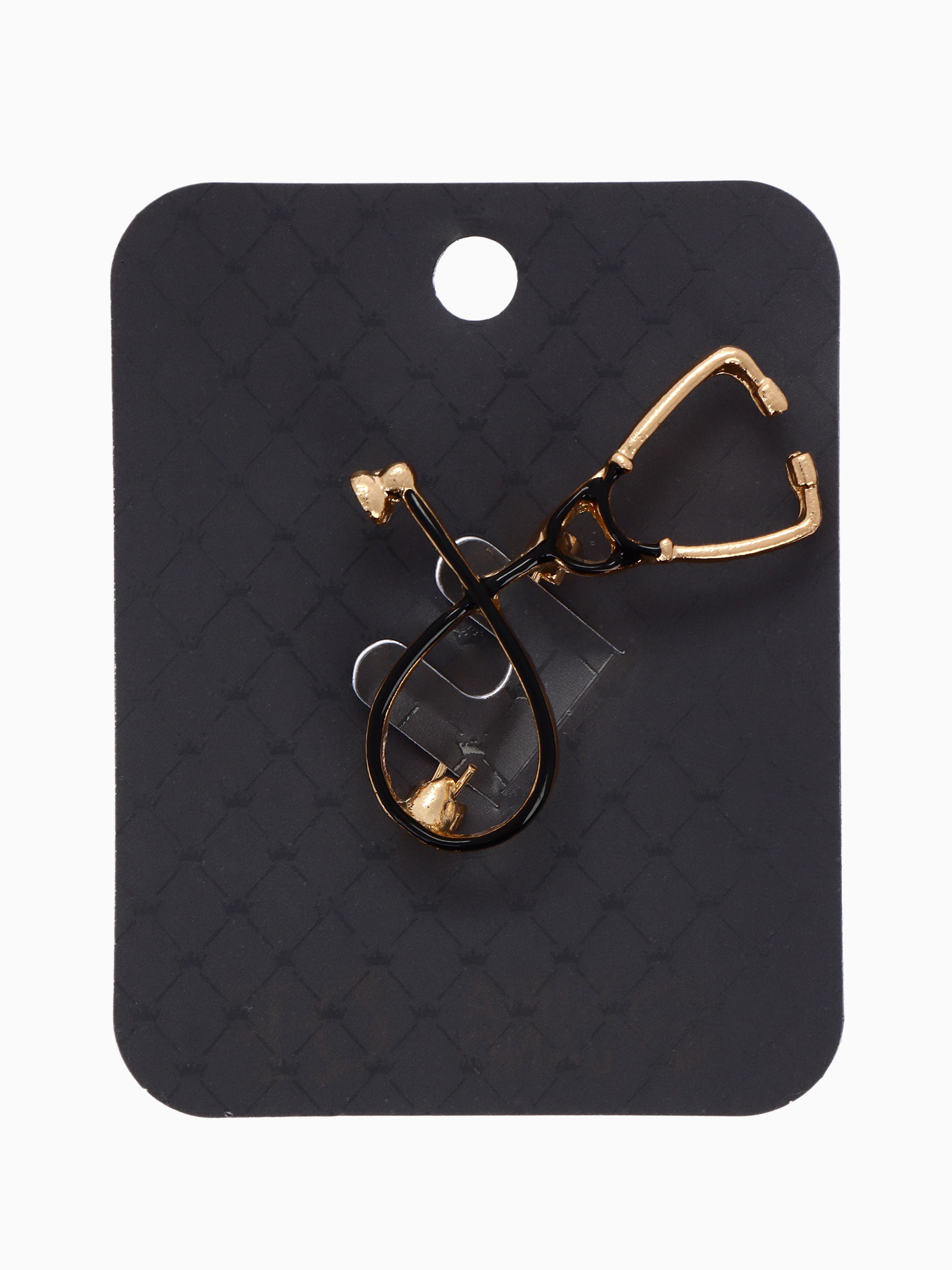 Брошь "Стетоскоп", цвет чёрный в золоте, 4.6x5.3x1 см., QF, Китай