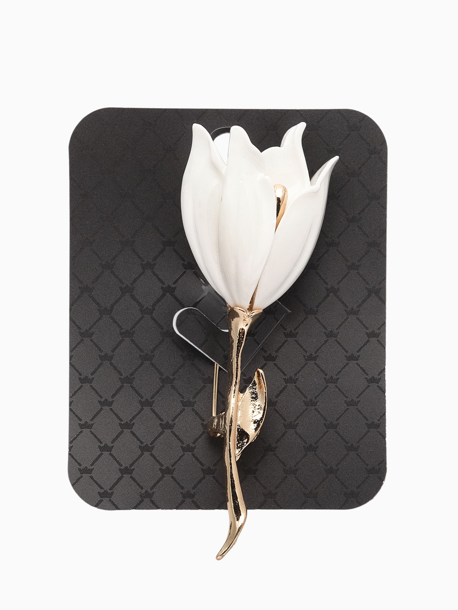 Брошь "Цветок" лилия, белая в золоте, 3.4x8x1.5 см., QF, Китай