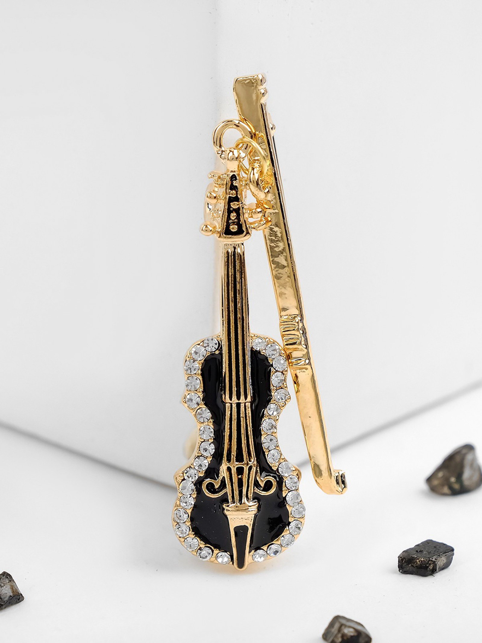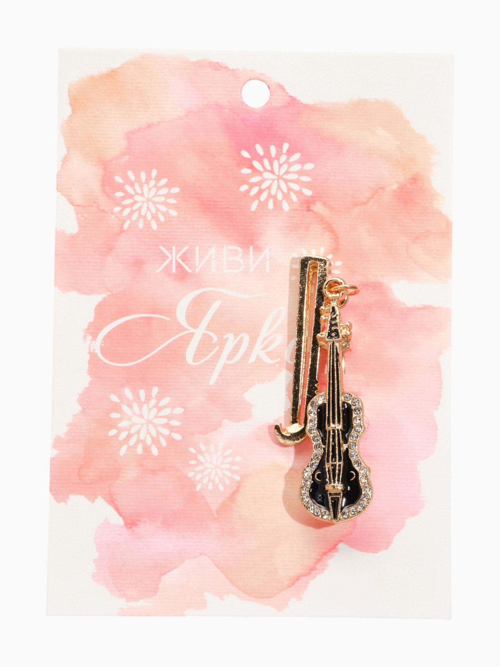 Брошь "Скрипка", цвет чёрно-белый в золоте, 1.2x4.7x0.5 см., QF, Китай
