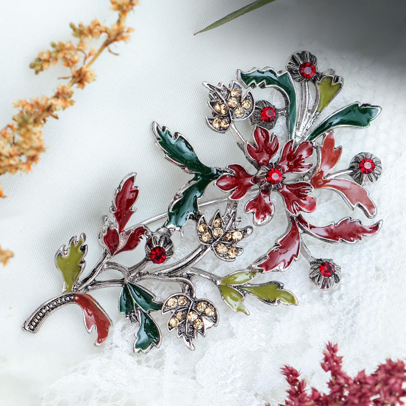 Вид: Броши, Брошь, Брошь Адресат: Бабушке, Внучке, Дочке, Маме Вид упаковки: Пакет, Подложка Тематика: Растения, цветы, Цветы и растения Вставка/Подвеска: Стразы, Эмаль Размер упаковки: 5.5 x 1 x 7 см. Материал основы: Металл Материал основания: Металл Бижутерия с открыткой: Нет Тематика праздника: Универсальная тематика Для кого: Для женщины Составляющие набора: Брошь Составляющие набора: Брошь tnved: 7117190000 Длина, см: 7 Цвет фурнитуры: Чернёное серебро Цвет: Разноцветный Набор: Нет Брошь, выполненная в виде осенней веточки, сочетает в себе изящество природных форм и глубокий характер чернёного серебра. Многоцветные эмалевые вставки придают аксессуару живость и насыщенность, а аккуратно расположенные стразы добавляют тонкий блеск, создавая эффект мерцания при каждом движении. Длина изделия 7 см позволяет сделать брошь заметным, но при этом элегантным акцентом, который гармонично впишется в любой образ. Металлическое основание с чернением обеспечивает долговечность и подчёркивает благородство оттенков, создавая уникальный стильный аксессуар для женщин разных поколений от мамы и бабушки до дочери и внучки.