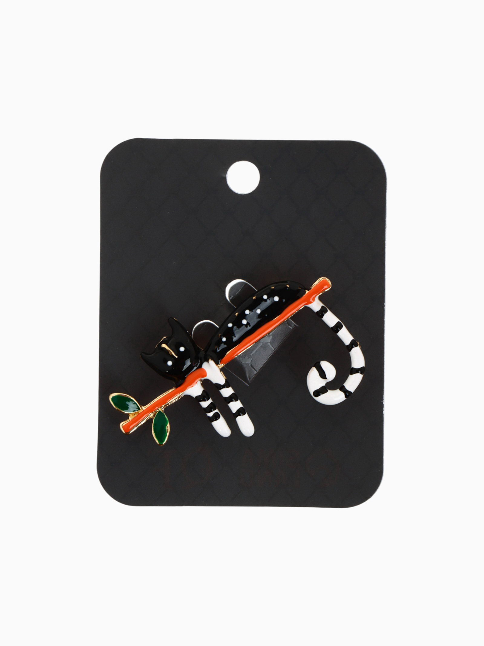 Брошь "Кошка" тропическая на ветке, цветная в золоте, 3.5x5x1 см., QF, Китай