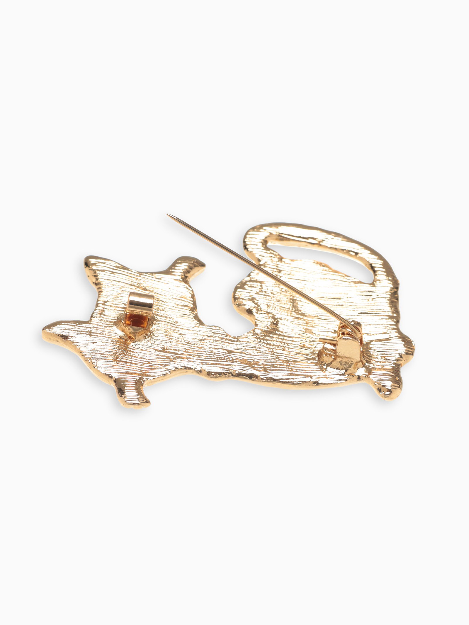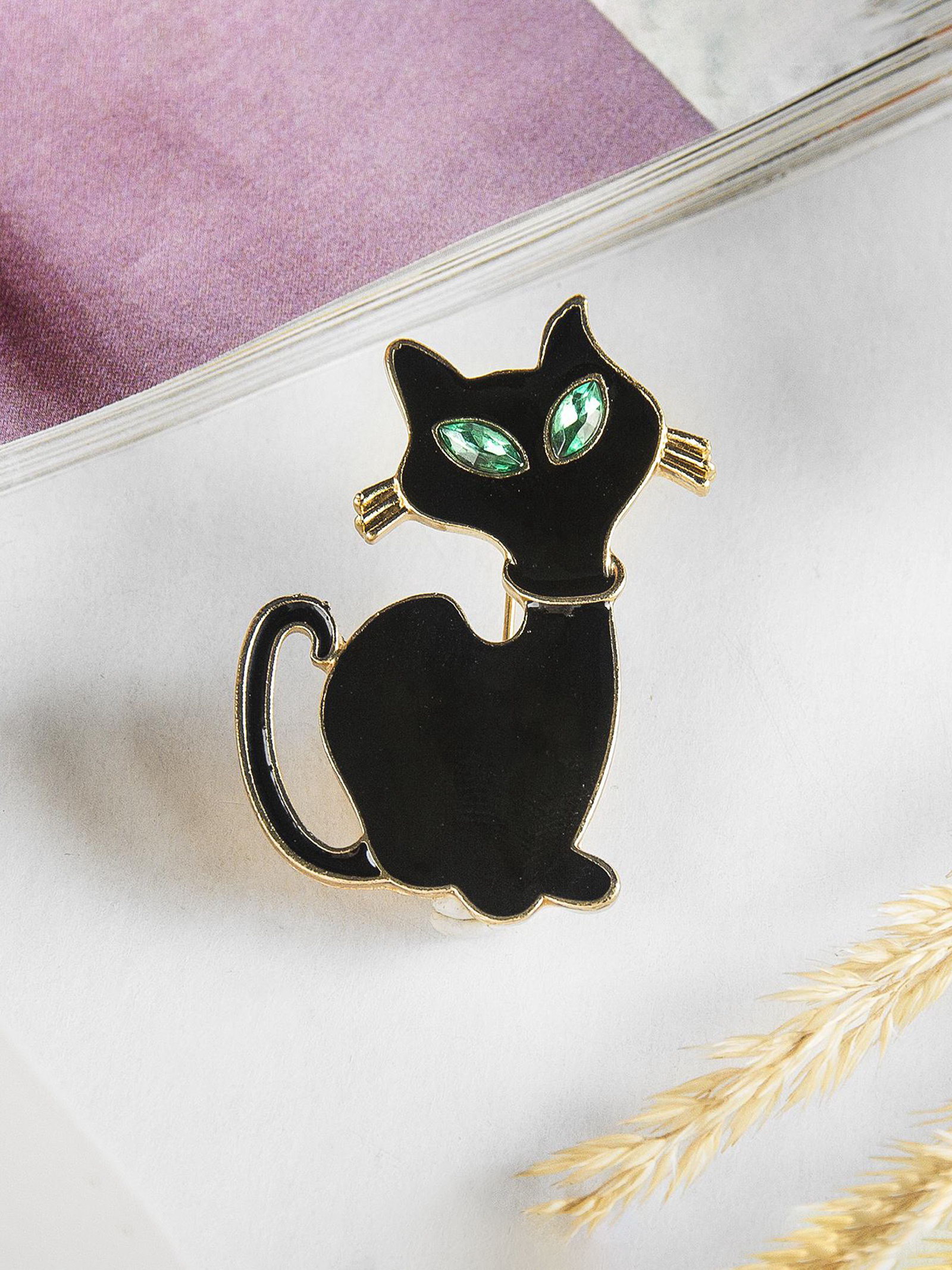 Брошь "Котик" застенчивый, цвет чёрный в золоте, 3x4.2x1 см., QF, Китай
