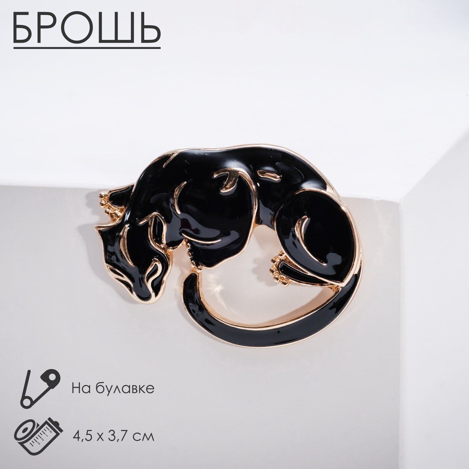 Брошь "Пантера", цвет чёрный в золоте, 3.7x4.5x1 см., QF, Китай