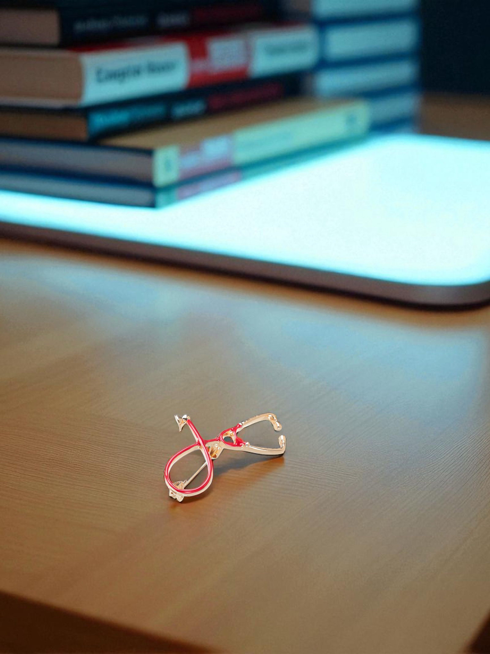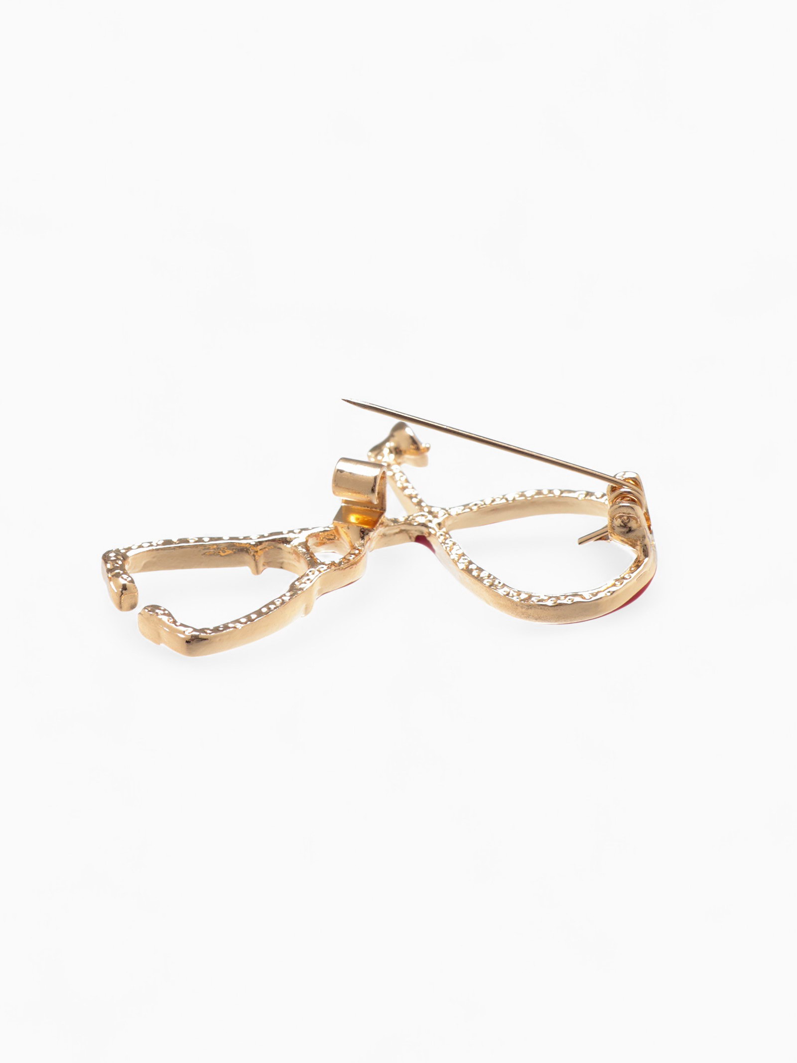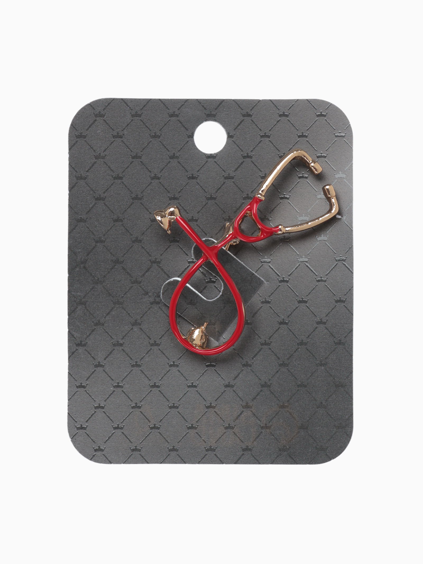 Брошь "Стетоскоп", цвет красный в золоте, 4.6x5.3x1 см., QF, Китай