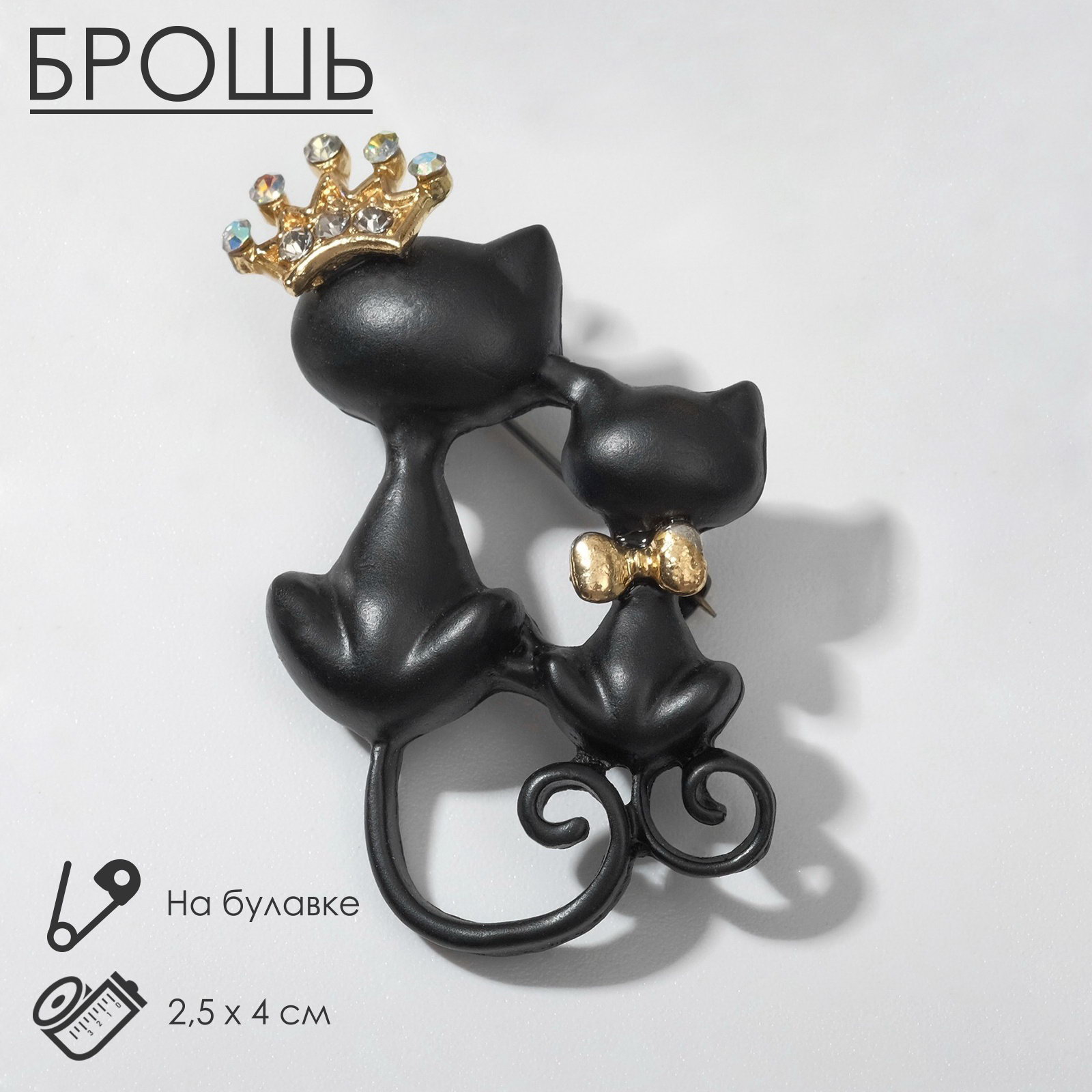 Брошь "Кошечки" принц и принцесса, цвет чёрный в золоте, 4x2.5x1.5 см., QF, Китай