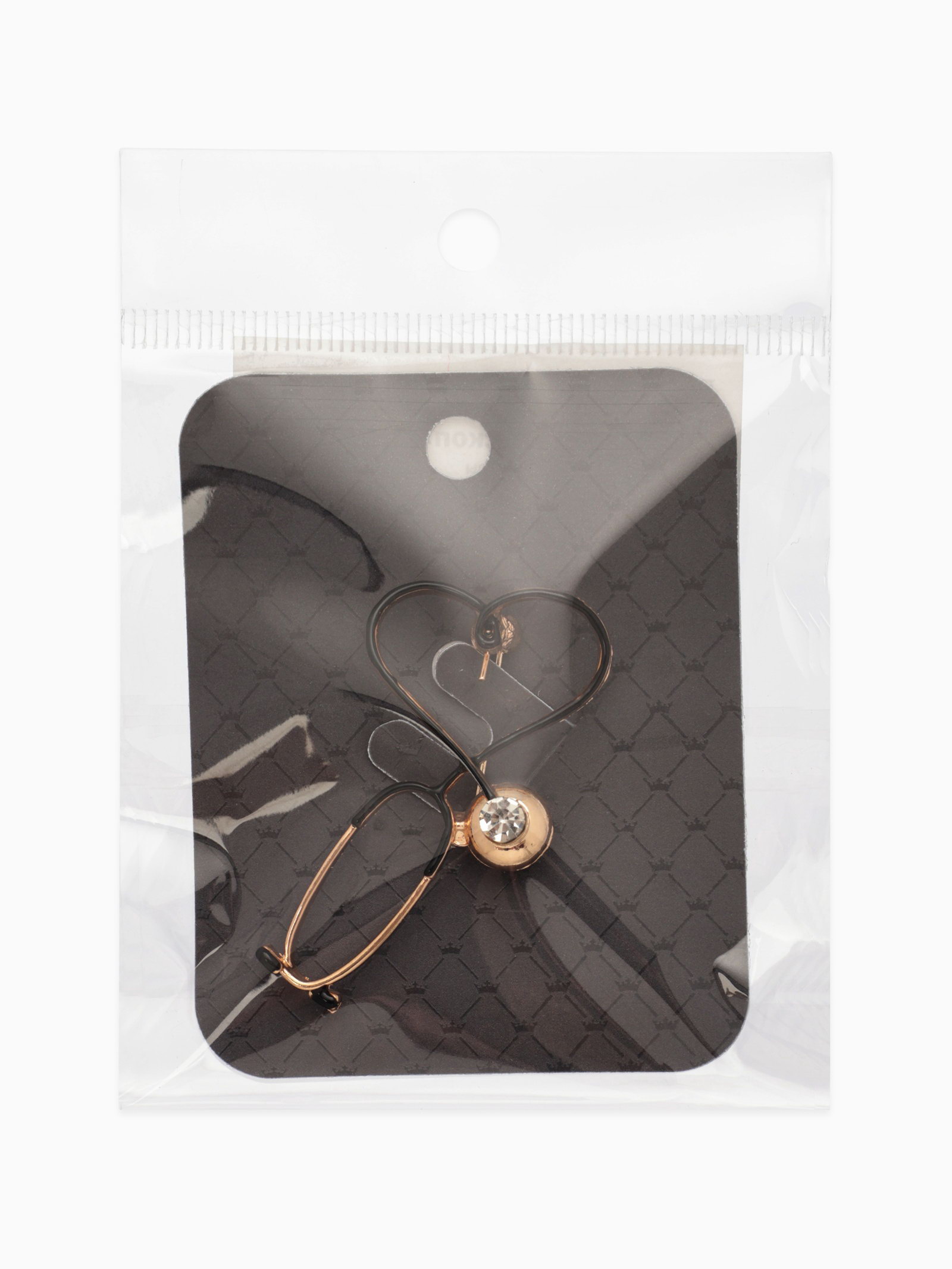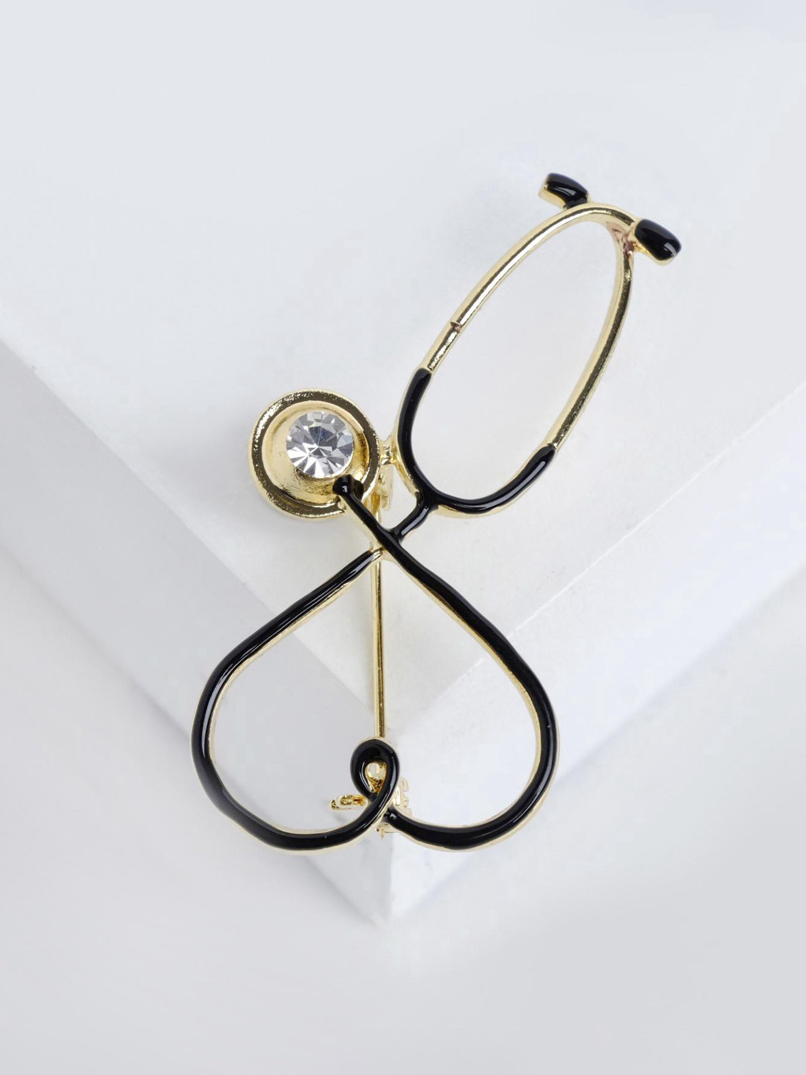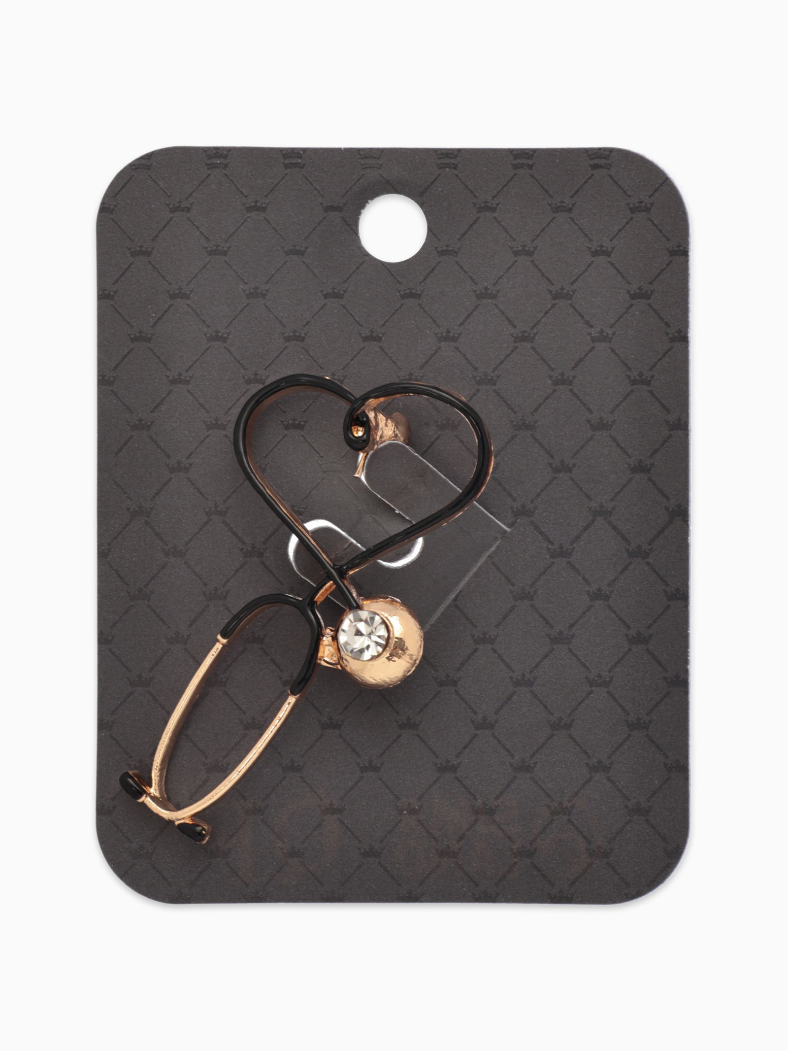 Брошь "Стетоскоп" сердце, чёрная в золоте, 2.4x5.3x1 см., QF, Китай