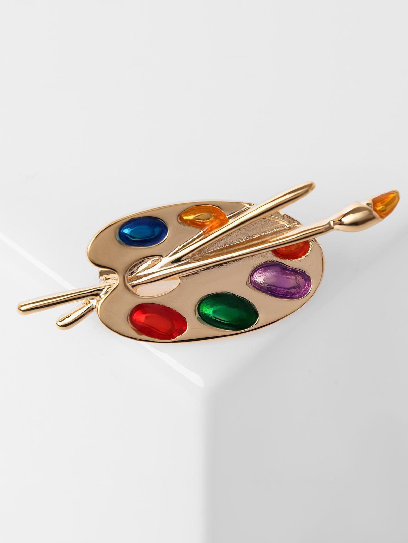 Брошь "Палитра" художника, цветная в золоте, 1.5x4x0.7 см., QF, Китай