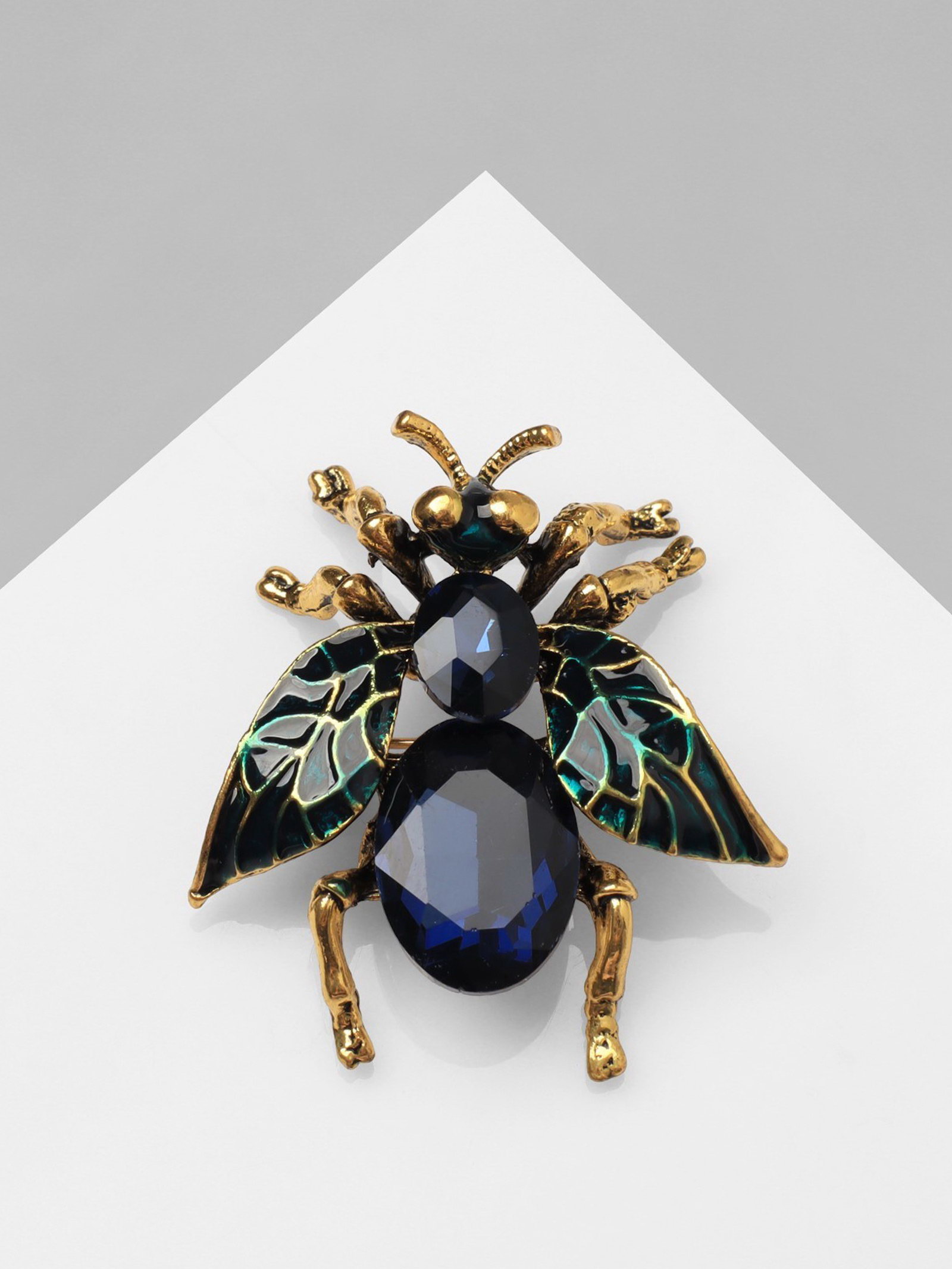 Брошь "Муха" крупная, цвет тёмно-синий в чернёном золоте, 4.7x4.5x1 см., QF, Китай
