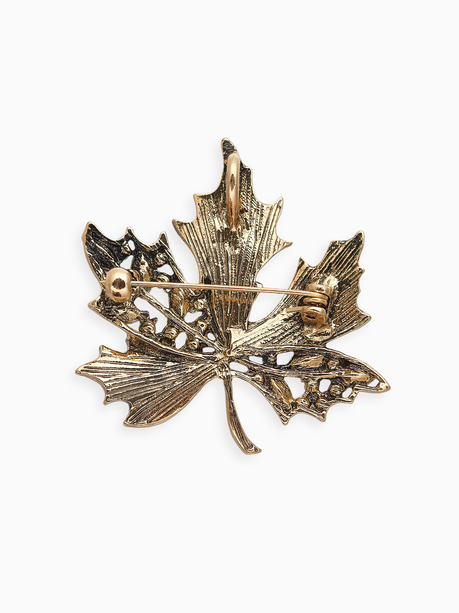 Брошь "Лист кленовый" стеклянный, цвет коричневый в чернёном золоте, 5x4.5x1.5 см., QF, Китай
